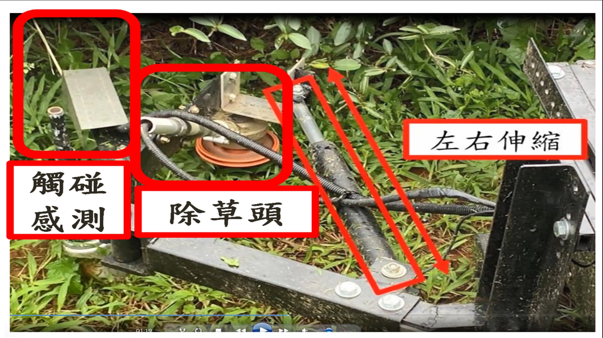 As a solution to the labor shortage in agriculture, high-efficiency machinery is being gradually introduced into tea plantations. While riding mowers can work quickly, the weeds beneath the tea canopy still require manual removal with a brush cutter. When a person operates a brush cutter, accidentally hitting the tea plant's stem can lead to girdling or even severing the plant, causing it to die. To address this, we developed a weeding mechanism with an "obstacle-avoidance function" that can operate deep under the tea canopy. Its obstacle-sensing device automatically retracts the weeding head upon detecting a tea plant stem, fundamentally preventing accidental damage while ensuring the healthy growth of the tea plants.