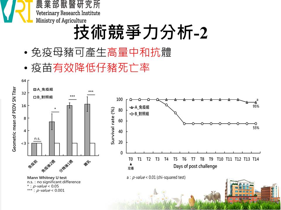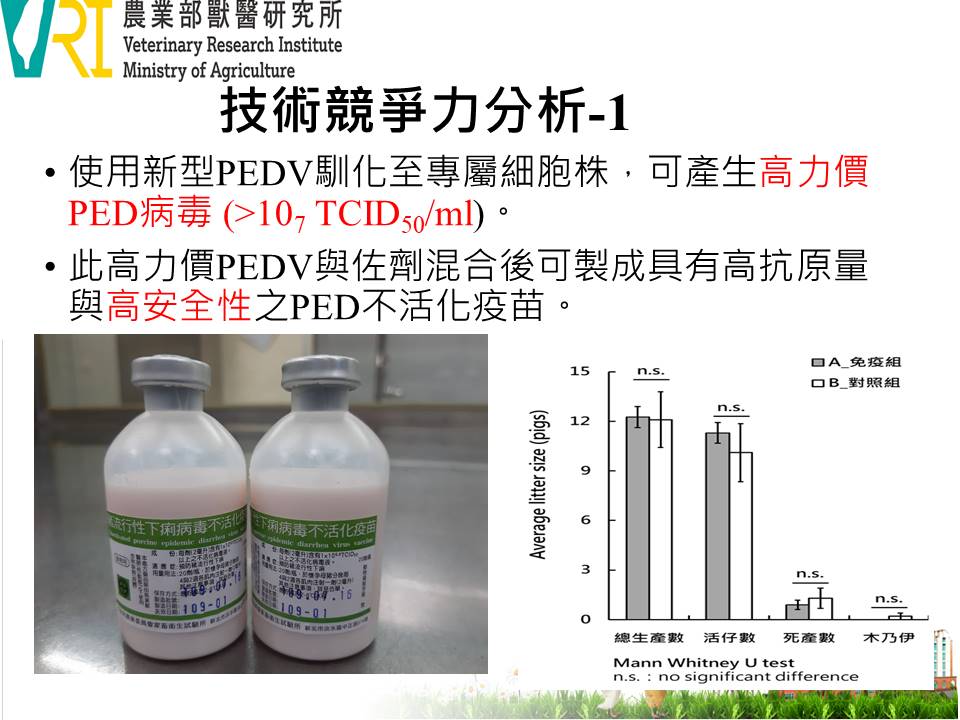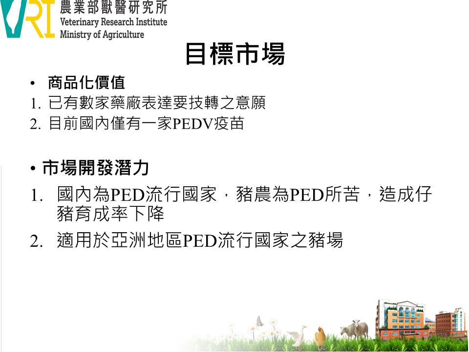 The inactivated vaccine for porcine epidemic diarrhea (PED) is formulated with a novel PEDV strain and an adjuvant, offering both high antigen content and superior safety. When administered to pregnant sows, the vaccine induces high anti-PEDV antibodies with no adverse effects. Nursing piglets with suckling colostrum acquire high levels of anti-PEDV antibodies that significantly reduce mortality and severity of diarrhea. Given that PED remains widespread across East and Southeast Asia, these areas are considered promising markets for this vaccine.