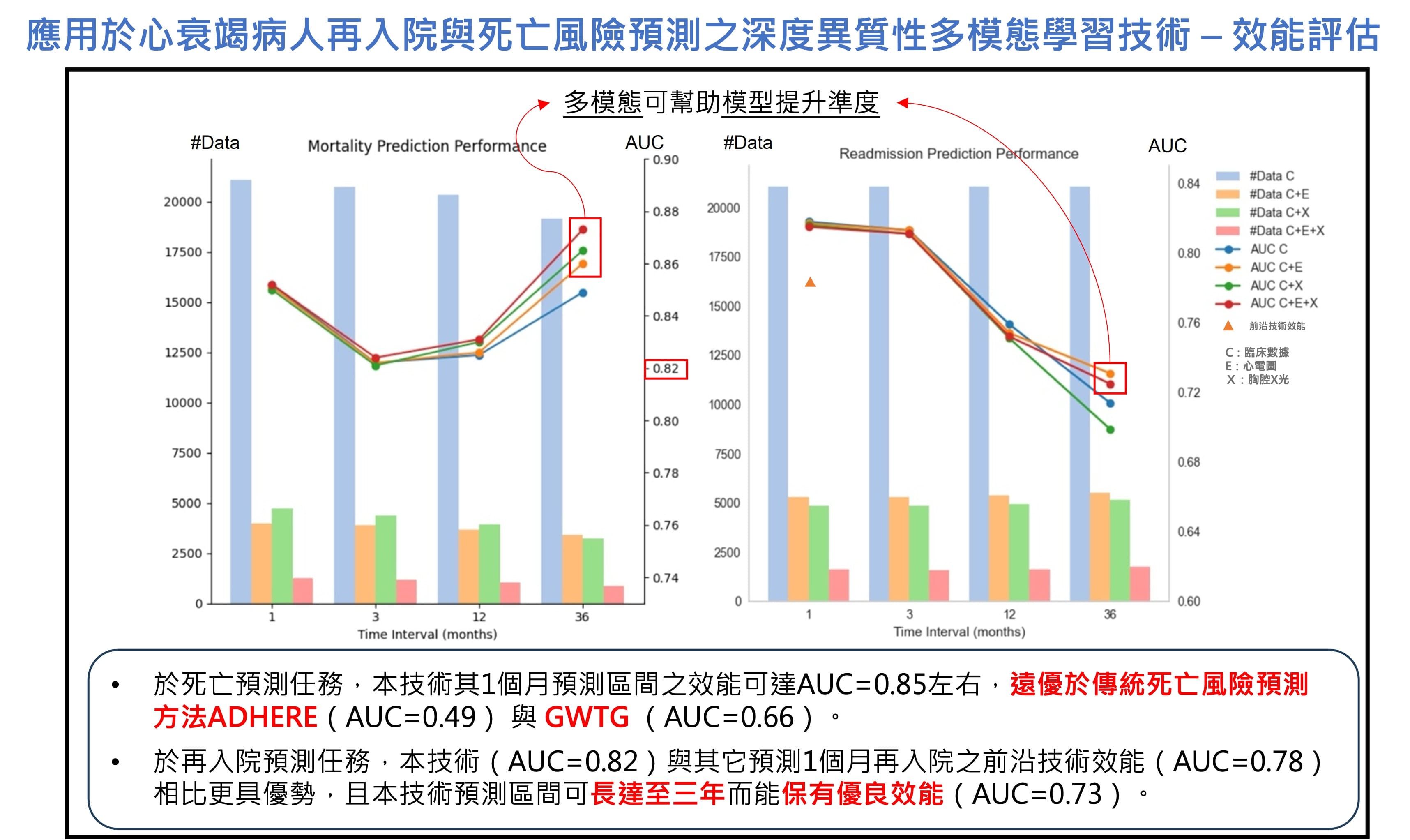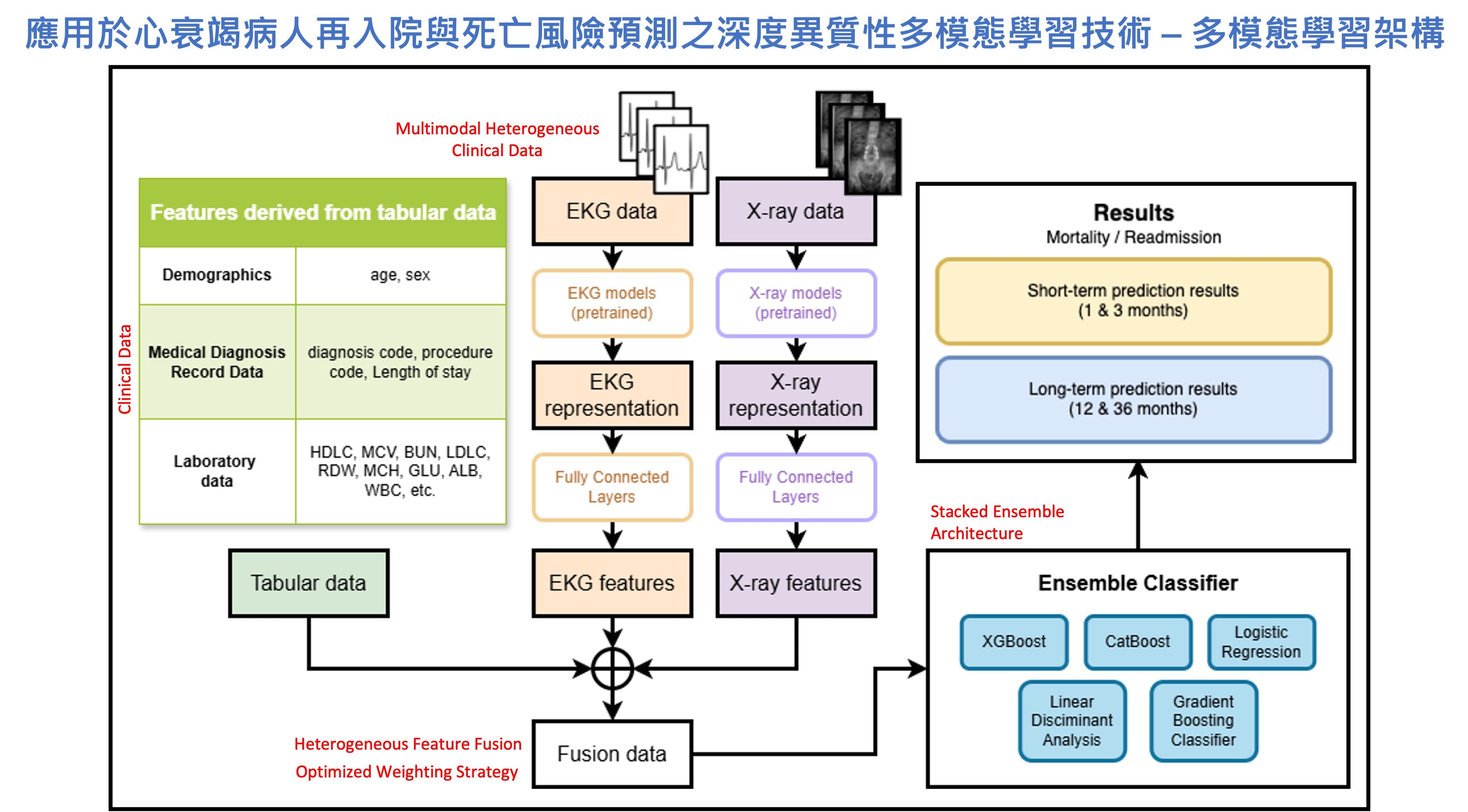 We developed a Deep Heterogeneous Multimodal Learning-Based Technique for Predicting Hospital Readmission and Mortality Risk in heart failure patients. This technique integrates heterogeneous modalities, including clinical data, electrocardiograms, and chest X-rays, to predict short-term and long-term risks for mortality and readmission. The relevant clinical application of this technique has been recognized by the 20th National Innovation Award and under validation in multiple hospitals.