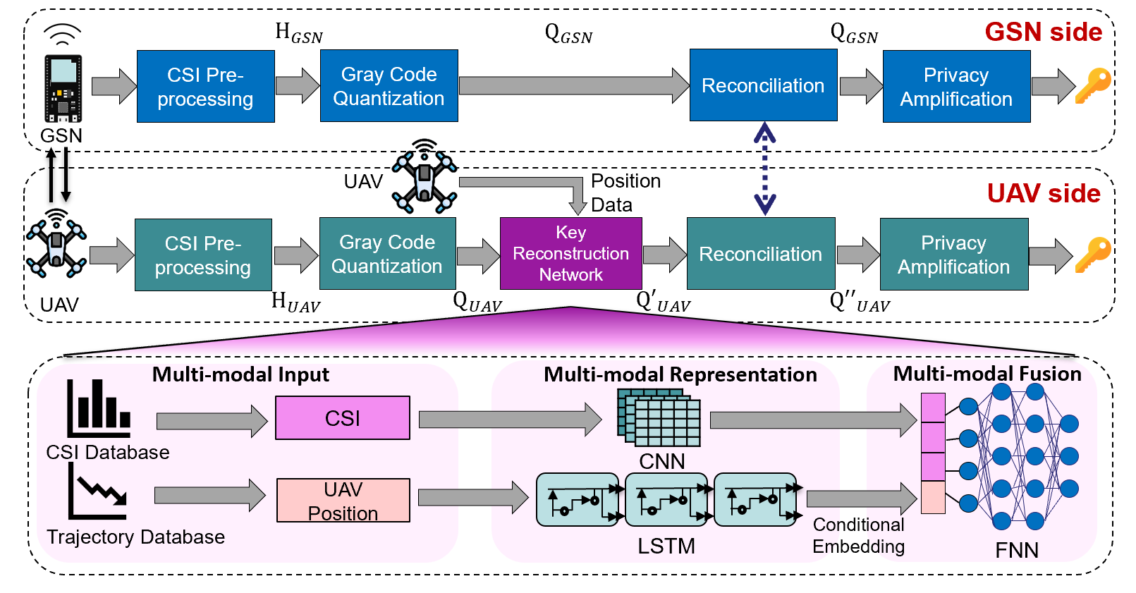 We propose a multimodal learning framework that integrates wireless channel state information with UAV flight trajectories to enhance the stability and security of physical layer key generation using deep learning models. The proposed technique effectively defends against future quantum decryption threats and is particularly suitable for environments with limited computational resources and the absence of trusted third-party authentication, thereby strengthening data protection in UAV networks.