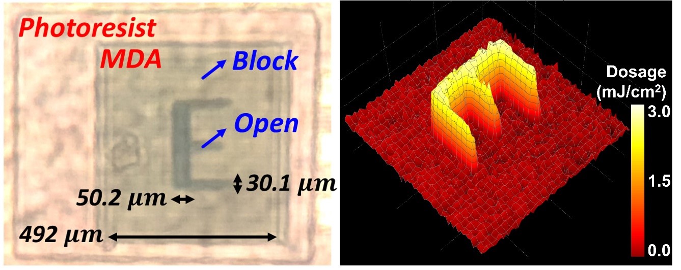 The Micro-Detector Array (MDA) aims to monitor the uniformity of dosage in various processes, including EUV, DUV, e-Beam, and Ion-Beam. The MDA is capable to measure critical dimensions, image log slope, and pattern edge location. Meanwhile, MDA is fully compatible with logic process, which provides advantages of high contrast in intensity, wide dynamic range, built-in calibration, and instant WAT analysis. These features enable the MDA to monitor process parameter variation.