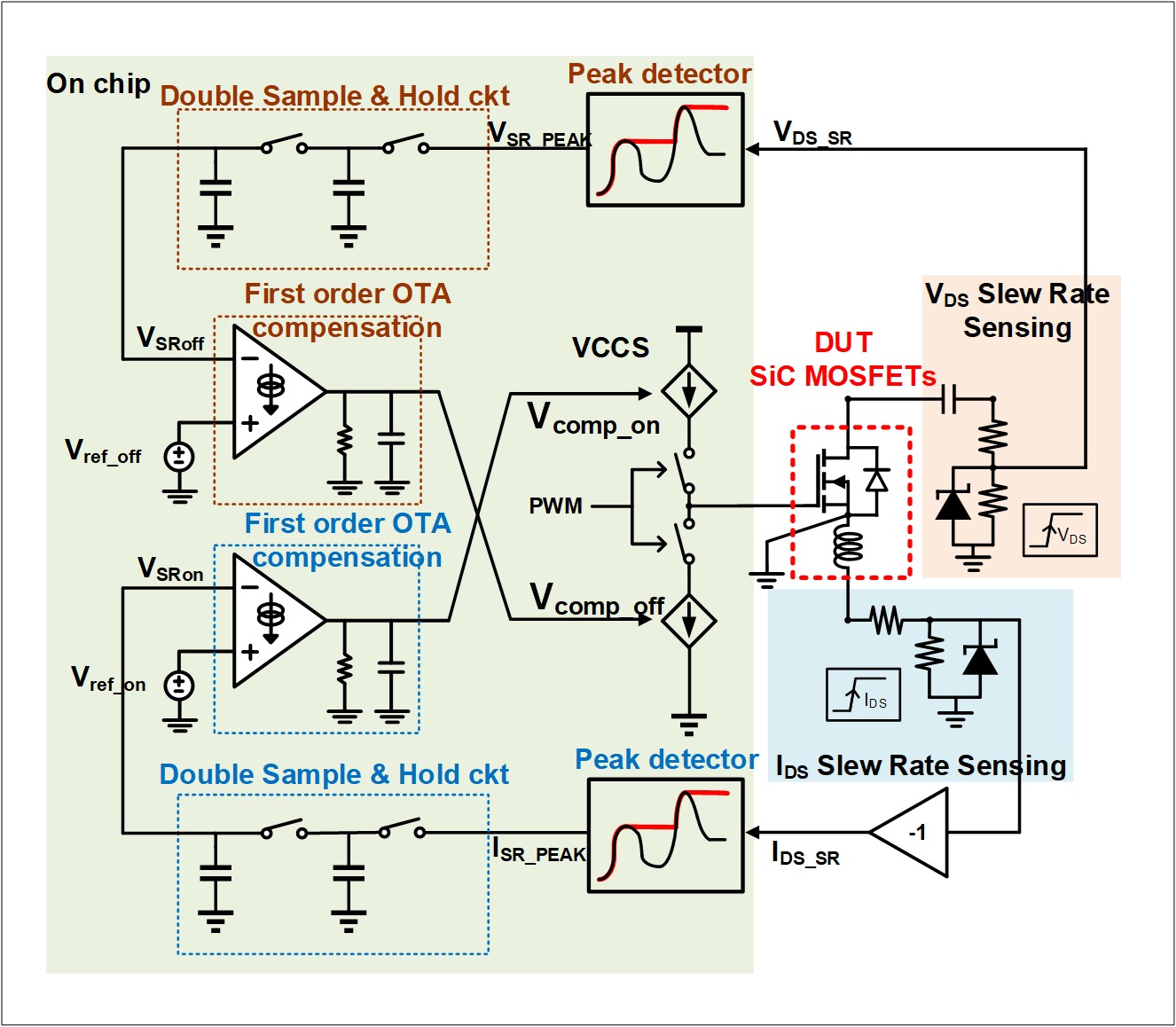 Future Tech | Information & CommunicationsTechnology Introduction: This technology is a closed-loop SiC driver IC designed for high-speed switching applications. It features slope detection and active compensation to precisely control di/dt and dv/dt, reducing EMI and overshoot. The integrated current source and sink enable accurate gate current regulation. A memory-based control mechanism further enhances switching stability by iteratively adjusting to the target slew rate. The solution is ideal for high-efficiency, high-power-density power conversion systems. Industry Applicability: This technology is suitable for EVs, power modules, and renewable energy systems. It features dynamic slew rate control to suppress EMI and improve switching quality. The design addresses SiC parameter variation and parasitic effects with precision gate control. It reduces system design complexity and sorting costs. Overall, it enhances power conversion efficiency and reliability.