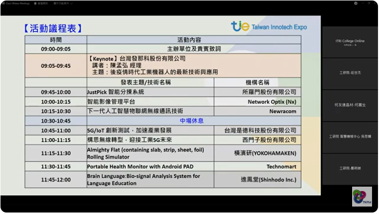2021 「零接觸防疫」專利技術推廣商談會 / 工業技術研究院