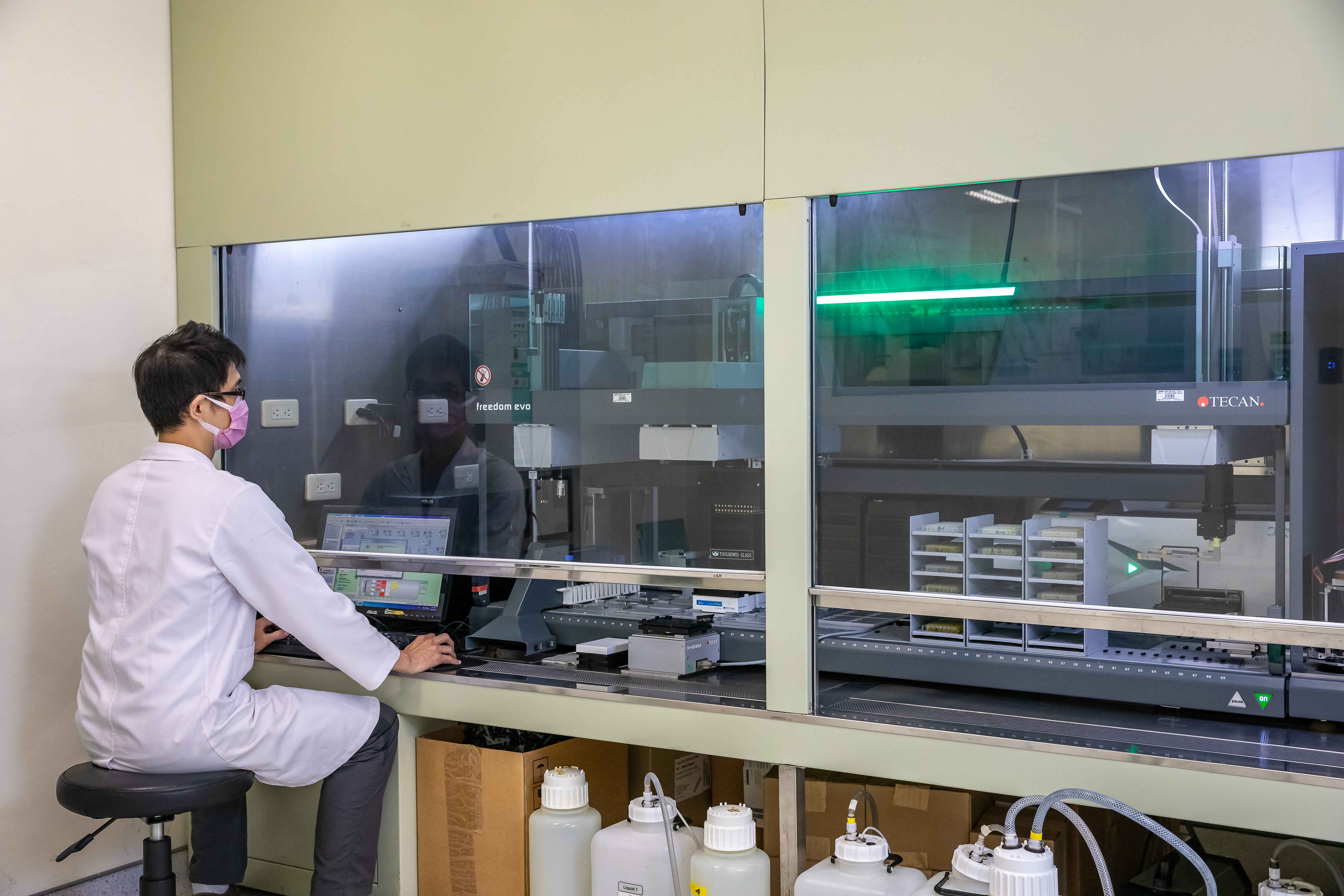 本技術由克雷伯氏肺炎菌感染病患之周邊血液所分離的單一記憶性B細胞及所建立單鏈抗體基因庫中,篩選出對抗藥性克雷伯氏肺炎菌具有高親和力抗體株,利用生技中心的三甘露醣抗體藥物複合物技術建構抗體抗生素複合物。在體外試驗中抗體抗生素複合體可有效抑制細胞內克雷伯氏肺炎菌生長,並於肺腔感染動物試驗中有效提升小鼠的存活率。本技術主要利用專一性辨認革蘭氏陰性菌單株抗體鍵結抗生素的”抗體-抗生素藥物複合體平台。抗體與抗生素藥物複合體可專一性結合細菌,細菌-AAC經由內吞進入細胞內釋放抗生素而殺死細胞內細菌,輔助標準治療方法,達到完成治療的效果。