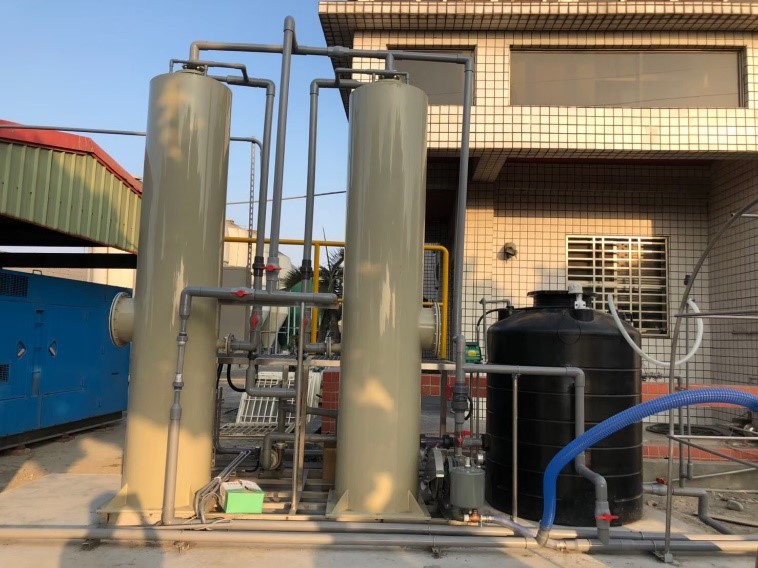 一般而言,沼氣中若含有相當濃度的硫化氫,對於廢水處理廠與發電機等週邊設備會造成腐蝕,導致發電機等硬體設備產生操作問題。因此本團隊開發沼氣生物脫硫技術,採用多孔性BioNET®擔體,可提供廣大表面積作為自營性硫氧化菌附著、增殖之介質,以達到去除沼氣中硫化氫之目的。生物脫硫單元以形成硫酸根離子方式操作,避免硫磺固體阻塞反應器,並搭配簡易清洗流程,具有高效率、高穩定性、操作簡易、沼氣品質穩定、高硫化氫處理負荷和無二次污染物等特點。本技術已於雲林崙背新庄畜牧場完成場域驗證,並於桃園、雲林、嘉義、台南與屏東等多場畜牧場設立沼氣生物脫硫系統,持續運轉中。