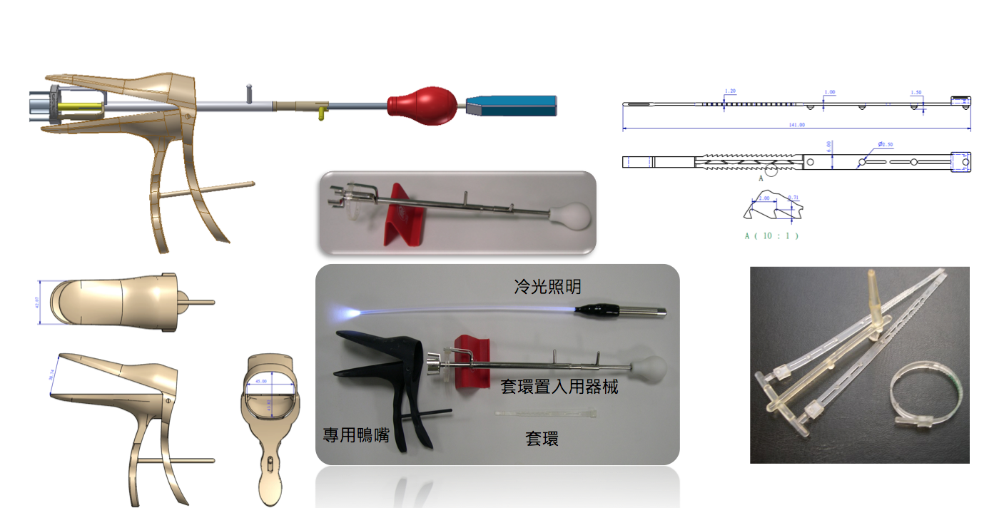 雖然早產的病因複雜而多元,但目前已知子宮頸閉鎖不全是某些特定早產發生的重要病因。正常的懐孕,子宮頸在足月才開始消失和擴張。 早產的個案,子宮頸則在足月前即消失和擴張。 對於有早產既往史的孕婦,或透過超音波篩檢發現子宮頸偏短(短於2.5公分)、子宮內頸出現漏斗,或子宮頸外口擴張,即為子宮頸閉鎖不全及發生早產的高風險族群;針對這些個案進行強化子宮頸的措施,是預防早產的最重要策略,目前的作法包括子宮頸環紮手術和子宮頸托的置放。子宮頸托是一種圓型托盤的醫療器材,經由陰道置放,用以頂住子宮頸外口,固定子宮頸角度,防止胎兒下降導致子宮頸口鬆開而早產。幾個臨床試驗(NEJM2016)結果顯示,子宮托的使用並未改善單胞胎及雙胞胎懷孕的早産發生率。相對的,愈來愈多證據顯示,子宮頸環紮手術可以明顯改善單胞胎或雙胞胎懷孕的子宮頸閉鎖不全現象(AJOG2020)。子宮頸環紮手術通常安排在懷孕16週之前,孕婦住院,至手術室,麻醉後,具專業訓練的婦產科醫師使用一條5mmX30cm雙側帶有一個半圓型鈍角手術縫合針的polyester white wize 不可吸收的材質,在離子宮頸口1至1.5公分處沿著子宮頸圓週朝逆時鐘方向入針-出針對綁,形成一個子宮頸的環紥束口袋。 子宮頸環紮手術雖然可以有效治療子宮頸閉鎖不全,但卻面臨施行及推廣的重大障礙。臨床上,手術效益取決於執行醫師技術程度;應用上,定位在侵入性手術,未能為孕婦接受。本產品,依循子宮頸環紥手術以帶狀條形成緊縮子宮頸外圍束口袋的原則,設計出一組包括一個一體成型,操作方便的「子宮頸套環置入裝置」用以推進、置放、速緊一個符合人體生物相容材質、可固定緊扣的「子宮頸套環」之醫療器材組合。本產品標準化及簡化子宮頸閉鎖不全治療流程,一般醫師在門診即可操作;使用本產品為一非侵入性、不需住院、免麻醉的治療過程,可大幅提高孕婦接受治療的意願。國際上相關新創醫材包括,美國Tufts Medical center的Michael House 醫師創立的Cx Therapeutics之子宮頸束緊裝置,尚未製造出醫療器械原型;另一家以色列新創公司PregnanTech研發出一個矽膠環,利用附帶的輸送器械置放子宮頸,此一矽膠環為一定型裝置,無法套用更大尺寸的子宮頸。相較之下,本產品最適合人體工學,最先取得台、中、美發明專利,最有臨床推廣潛才,最具備全球佈局的商業價值。