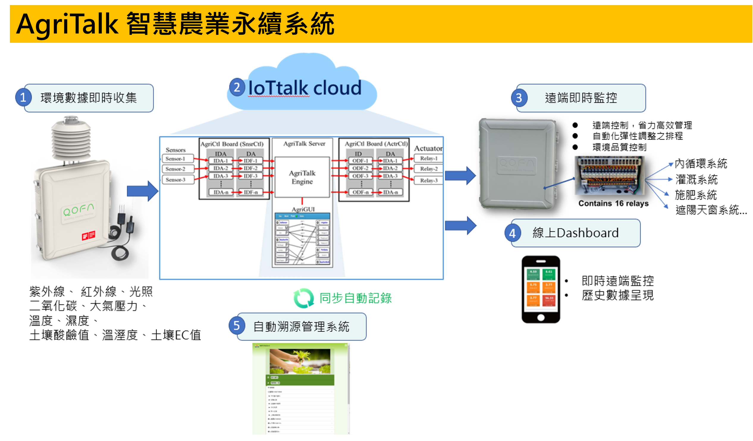 為了透過推廣智慧化友善耕養協助降低農業的溫室氣體排放並推廣低碳農產品的目標,這個「農村創生計畫」涵蓋整個可長可久的運營模式與核心的智慧農業技術方案兩個部分,為了實現這個理念,我們開發了「智慧神農雲端管理系統 (Tano Intelligent Agriculture GACP Cloud Management System (TIAGA))」,系統分為兩個部分,第一個部分是硬體設備,包括TIAGA 智慧神農物聯網主機(Host)、TIAGA 智慧多功能微型氣象站 (MX主機)、TIAGA田間智慧化作物生長版環境偵測主機(MX主機)、網路攝影機、TIAGA 16路雲端智慧化控制主機(M3主機)與TIAGA農場端區域主機,另外一部分為軟體部分,包含TIAGA物聯網系統、TIAGA農業專家系統(TIAGA AES)與TIAGA產銷溯源系統。TIAGA智慧神農物聯網主機蒐集來自選配的TIAGA 智能多功能微型氣象站提供的周遭氣象資訊,TIAGA田間智慧化作物生長版環境偵測主機提供的作物生長環境實際資訊,並將蒐集到的數據資訊透過網際網路傳送到雲端管理系統與LAN傳送到TIAGA農場端區域主機。TIAGA智慧神農物聯網主機並可接收來雲端管理系統傳送的遠端控制到TIAGA 16路雲端智慧化控制主機(M3主機)開啟或關閉農場自動化設施,如自動化給水給肥設備等。獨有的TIAGA農場端區域主機作為容錯設計,確保就算網際網路連線中斷的情況下,農場端的設備仍可以正常運作無虞。此外,硬體設備均為模組化設計,在農場就像拼積木般根據實際需求疊加,此外所有模組均採用工業規範設計。上面提到的MX模組,所有感測器均採用工規的RS485 ModBus RTU傳輸協定,因此可根據實際農場需求新增不同的感測器,如雞舍所需要的甲烷與氨氣偵測等等。在雲端軟體方面,TIAGA物聯網系統整合來自TIAGA 智慧多功能微型氣象站、TIAGA田間智慧化作物生長版環境偵測主機與網路攝影機蒐集的數據資訊與影像,並可透過儀表板方式呈現提供給農友,也將資料儲存至資料庫提供給TIAGA產銷溯源系統使用,TIAGA農業專家系統分析TIAGA物聯網系統所蒐集的相關數據資訊,並透過即時通訊軟體LINE推播到農友手機提供病蟲害發生預警,甚至是作物每一生長階段該注意的事項與如何給藥給肥,系統甚至可以針對狀況直接自動化控制農場環控設施,透過這樣的輔助,智慧新農人就可以簡簡單單的透過手機的瀏覽器,如Google Chrome完成很多農場管理工作,最後TIAGA產銷溯源系統除可讓農友輕鬆以手機完成農務紀錄,亦從TIAGA物聯網系統蒐集到作物生長環境數據與生長影像,也提供上傳第三方公正檢測報告,因此系統提供的是完整從種苗到餐桌的作物完整資訊,消費者只要掃瞄作物或產品上的QR Code,就可以連結到農場的影像溯源資訊,詳盡的生長環境紀錄,讓消費者可以了解作物生長的環境條件,以GACP規範標準來記錄的農務工作記錄,完整的作物生長縮時攝影到採收前的第三方公正檢測報告,此外,電商連結服務讓消費者可以直接下單購買作物或產品,完善整個智慧農業體系,亦建立農友與消費者間互信的橋樑。除了智慧農業技術的開發,整個長遠的運營與商業模式才是更重要的,團隊推出的「農村創生計畫」是一種契作的循環模式,由社會企業的福委會發動公司同仁直接對農友做團體契作,社會企業的福委會彙整同仁們所需求農產品,友善耕養的農友們銷售契作農產品,此外,電商及食品的社會企業優先銷售或採購友善耕養農友們的農產品,持續的團體契作既是保障農友基本收益,也解決農友下一期種植成本資金問題,農友就可以採購下一期種植相關種苗及資材與支付智慧化設備系統每期租賃費用,消費者持持續以「鈔票」,用最實際行動來支持智慧化友善耕養的農友們,創新的社會企業商業運作模式,讓計畫可長可久並得以落實與複製,這不僅是確保食安,穩定農友收益,更是持續協助促進環境永續。