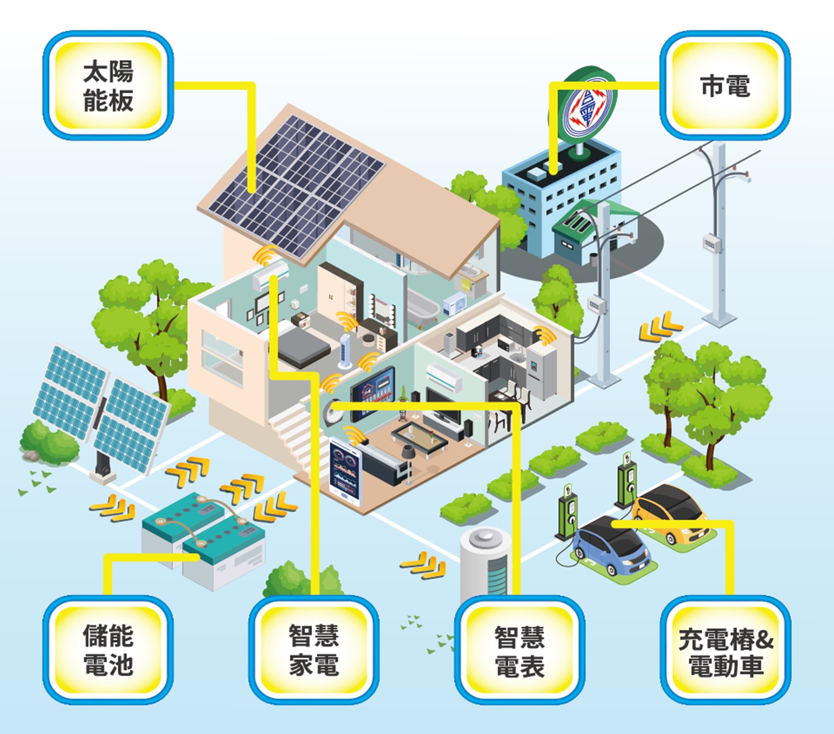 隨著AMI智慧電表積極佈建與家用創儲能市場崛起,台電鳳山宿舍智慧家庭展示屋整合AMI智慧電表、太陽能、儲能與智慧家電,使得未來家庭不再只是電力的使用者,也是電力的產消者,達到智慧家庭創新應用。