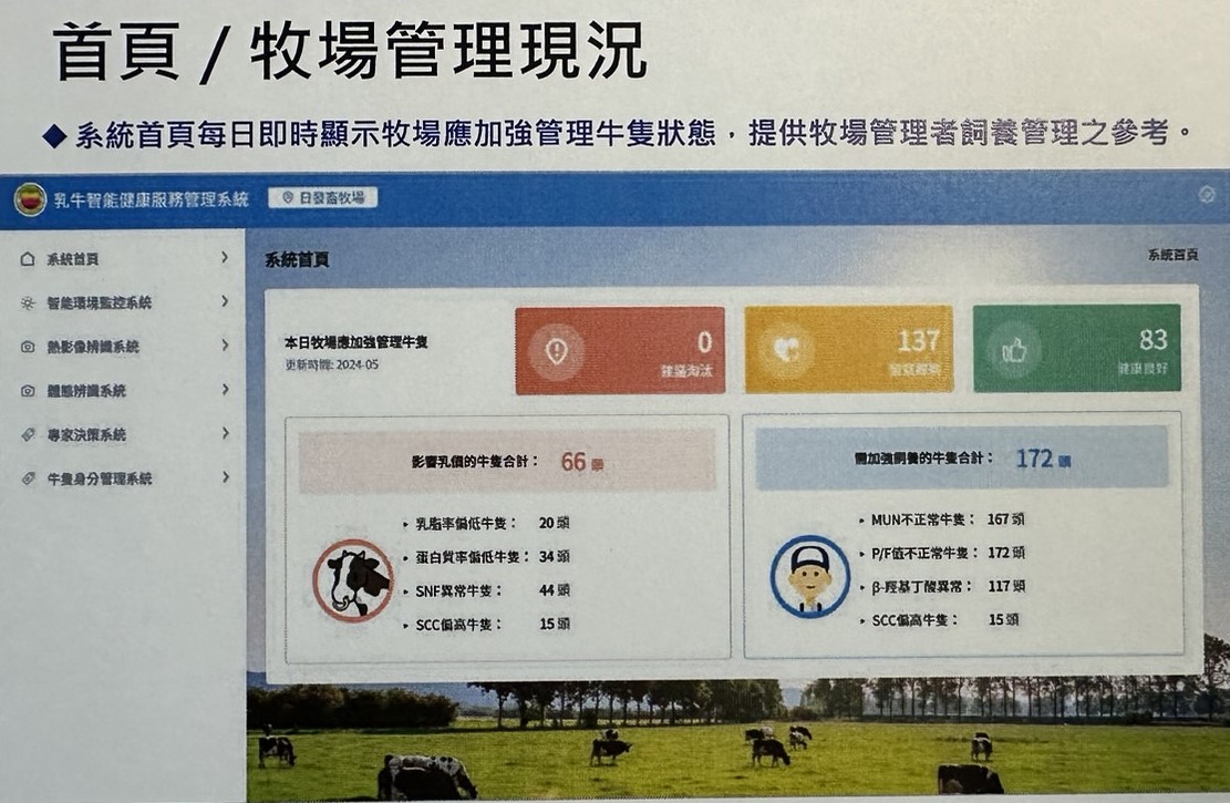 「AI智慧畜禽健康監測技術」以人工智慧為核心,融合熱影像、影像辨識、聲紋分析及物聯網技術,打造創新的畜禽健康管理模式。豬隻部分,結合熱影像與AI影像辨識模型,可有效掌握群體動態及健康情形。乳牛部分,應用紅外線攝影與RFID技術,可監測牛隻體溫及乳房炎等問題。禽類部分,以AI體重監測與呼吸道聲紋檢測,可即時掌握群體健康狀態。本技術以全方位、非接觸及數位化方式進行畜禽健康監測工作,可有效提升畜禽場域管理效率、動物福祉與生產效能,從而達成農業轉型及永續發展之目標。