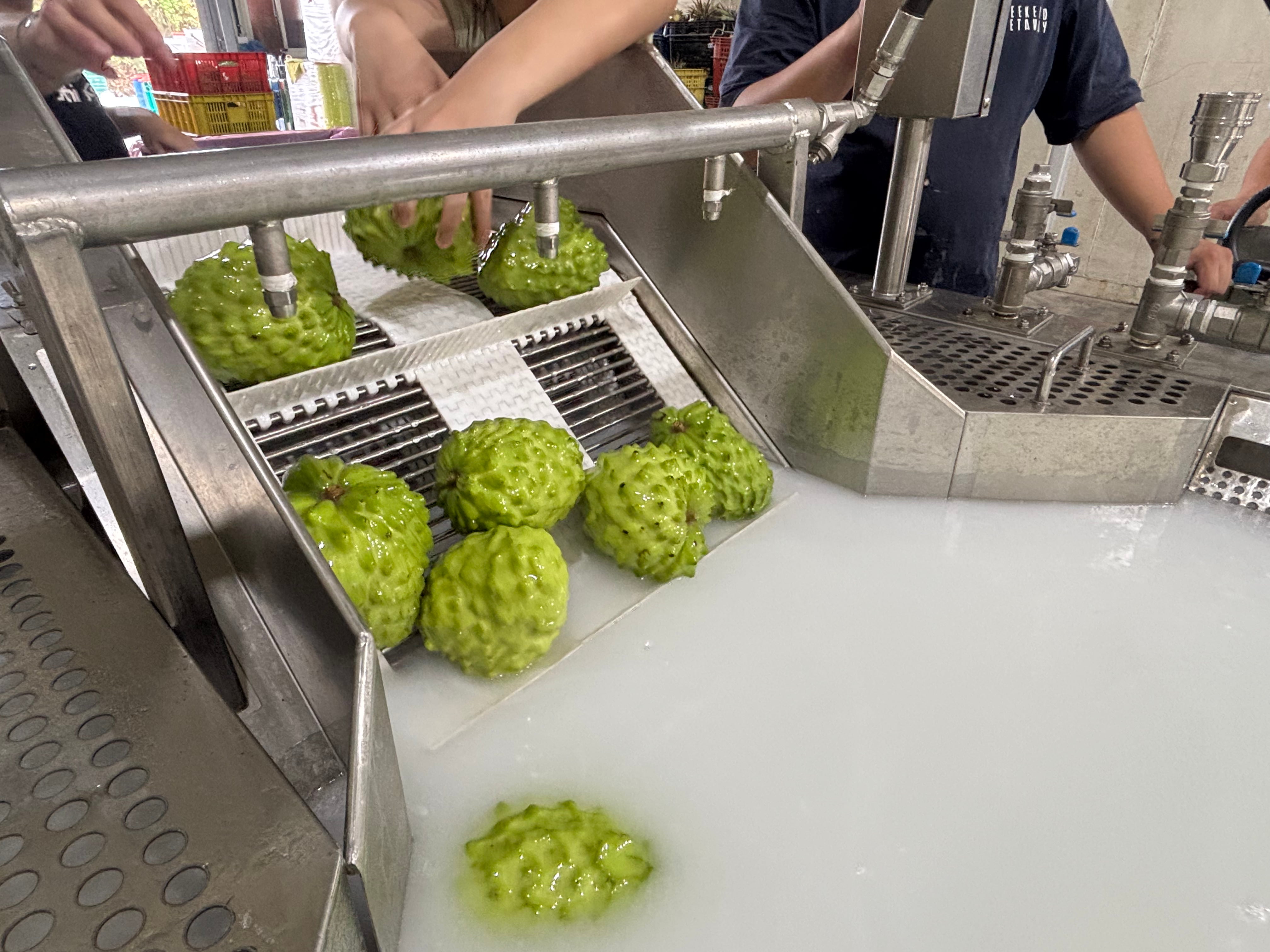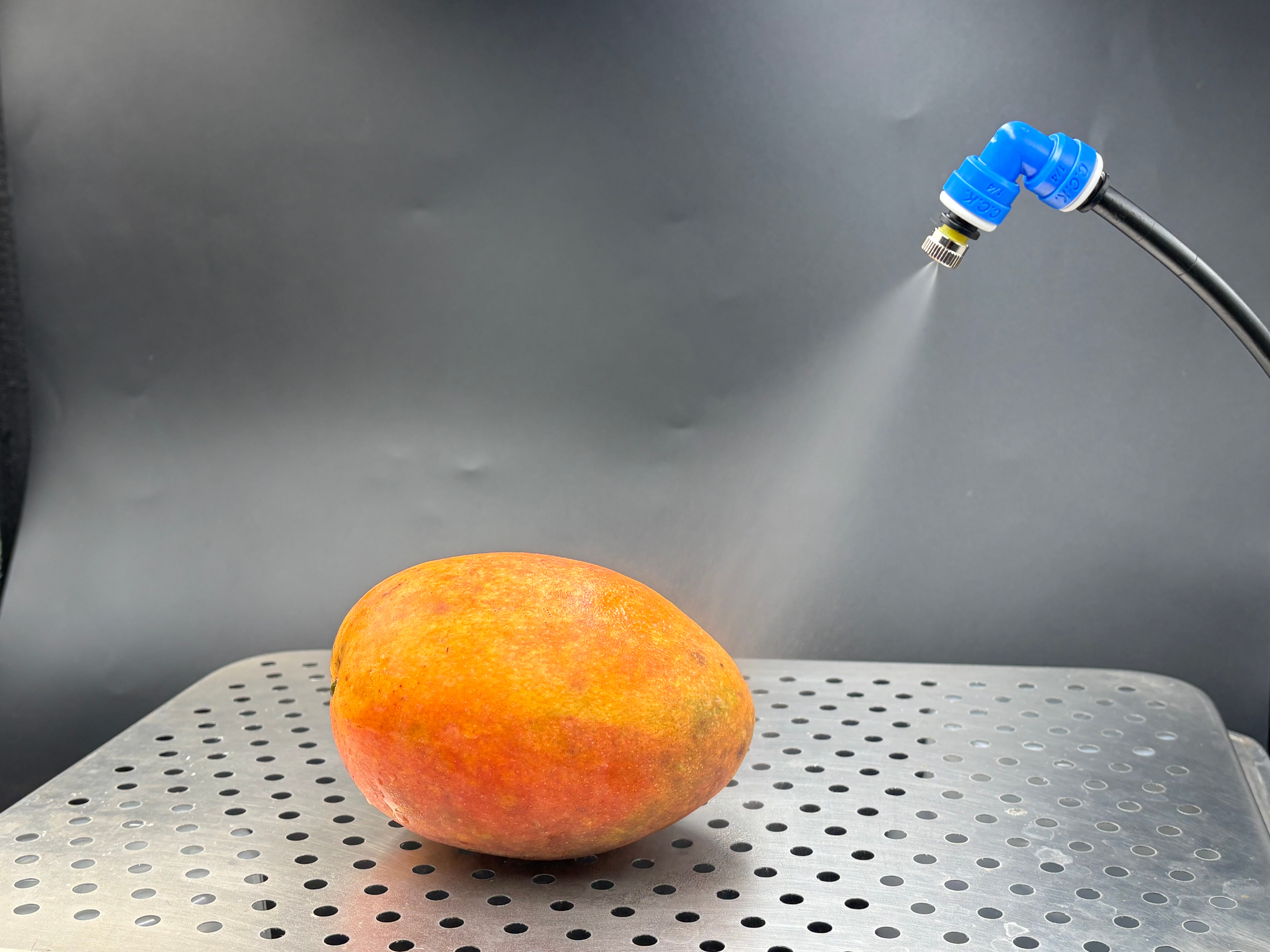 本團隊於前期研究中建立兩項應用於果蔬處理之技術。其一為微氣泡技術,能有效移除果蔬表面附著之害蟲與雜質;其二為奈米精油塗層技術,透過在果蔬表面形成奈米級薄膜,以降低水分散失速率並延緩腐敗過程。後續進一步將兩者進行整合,建構複合式處理設備,可於單一流程中兼具清潔與保鮮效能。該技術不僅顯著提升採後處理效率,亦能延長果品於貯藏與運輸期間之保存期限,提升貨架壽命,並可增強外銷果品品質與國際市場競爭力。