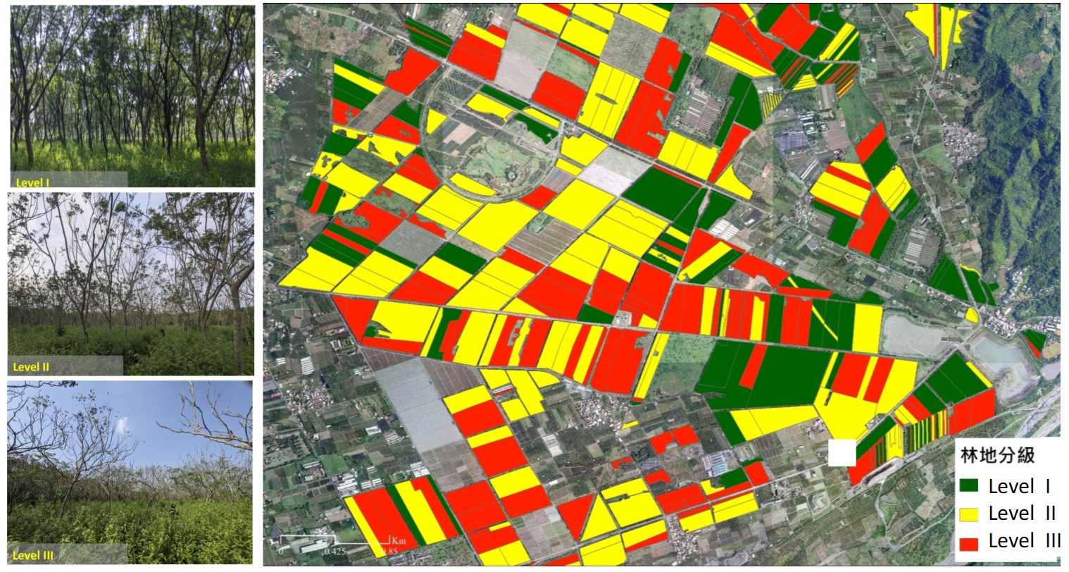 台糖公司攜手成功大學測量及空間資訊系王驥魁教授團隊,利用「空載光達分析技術」將10,337公頃台糖造林地以數位化方式,產製出 6千多個森林邊界區塊,並計算出各區塊之平均立木密度、樹高及樹冠穿透率等生長指標。各指標經集群分析法建立純林及混合林等林相分級標準,再依分級資訊可大面積篩選生長勢優良,且具申請自然碳匯潛力之區位。
