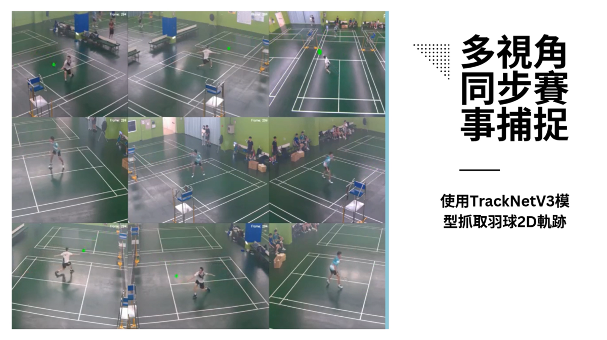 本計畫旨在克服傳統2D羽球戰術分析的侷限,透過先進的3D重建技術,將平面影片資料轉化為可互動的虛擬賽事。核心技術利用智慧場館的多視角攝影機,重建羽球的3D飛行路徑,球員、和他們手上球拍的完整3D外觀與姿態,打造出一個完整的比賽回放與虛擬平台,為教練與運動員提供前所未有的戰術分析與訓練體驗。