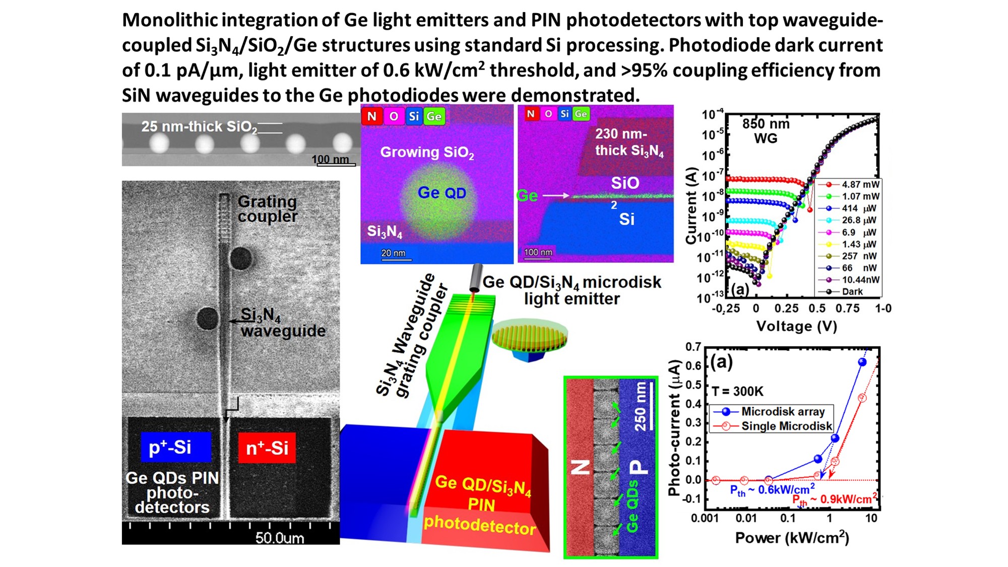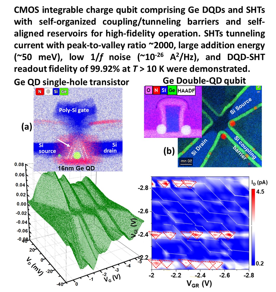 運用CMOS製程工藝,開發鍺量子點成長技術,實現高效計算核心硬體如:半導體量子位元與矽光子等元件。展示全球首例,常溫運作單電子電晶體與具擴展性鍺量子位元直流特性,開啟半導體量子電腦商品化契機。鍺量子點具有高溫穩定特質,可整合氮化矽波導、鍺光源與鍺光偵測器於一體,實踐矽光子積體電路,促進高效計算應用。