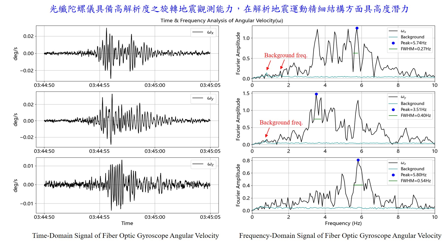 旋轉地震學是邁向多維高精度地震感測的關鍵技術。本技術以自製光纖陀螺儀為核心,建立地震運動旋轉維度之感測系統,提升地震觀測維度與精準度。本光纖陀螺地震儀具高精敏測量旋轉運動、抗環境干擾、可攜性與擴充性等優勢,已成功應用於實地觀測,並鏈結產學研能量,發展次世代地震觀測網,強化台灣地震監測與工程防災能力。