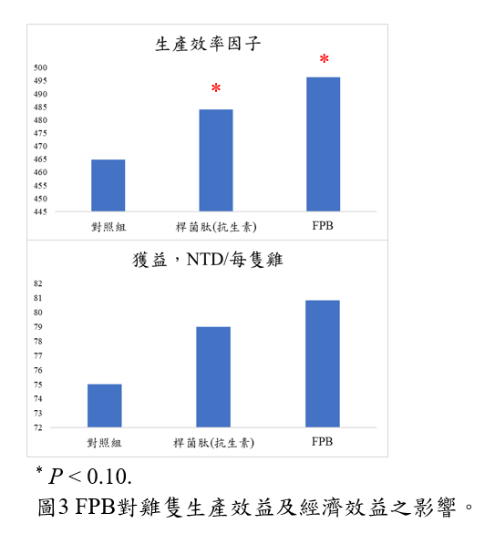本團隊已成功開發功能性純素食濕式發酵產物(FPA)與乾式添加物(FPB),以副產物發酵生產高含量表面素,具抗菌活性。應用於肉雞飼料,FPA可完全取代魚粉,FPB取代抗生素促生長劑,可提升生長效益及經濟效益,具減碳及廢棄物再利用潛力,已獲專利並發表Q1期刊,展現安全、高效且永續的綠色循環農業之效果。