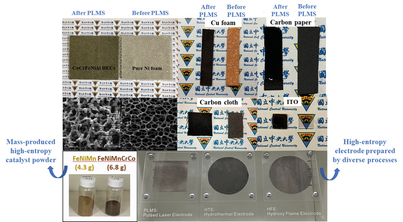 本研究開發電催化海水產氫技術,以高熵觸媒陽極為核心,採用脈衝雷射掃描等製程於鎳基板生長奈米粒子,具低啟動電壓與超長耐久性,達工業標準。優化陰極觸媒後提升電解效率,組裝小型水電解系統並放大,驗證量產潛力。技術延伸至膜水電解槽與大型鹼性電解槽,優化設計提高產氫效率與純度,同時探索廢水淨化與產氫雙效應用