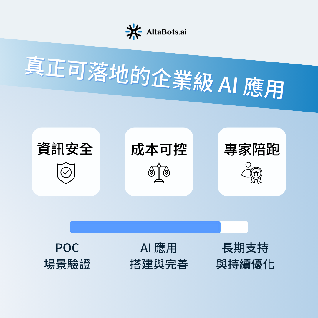 AltaBots.ai 應用於多個產業,特別能提升客戶服務與內部效率。例如,電商可利用平台建立自動化客服,處理訂單、退換貨,並提供個人化產品推薦。金融業可打造 AI 助理,協助處理常見問題、引導客戶進行線上申辦,並進行即時風險評估。製造業則能優化內部營運,例如自動化報表生成與供應鏈管理,顯著降低成本並提升競爭力。