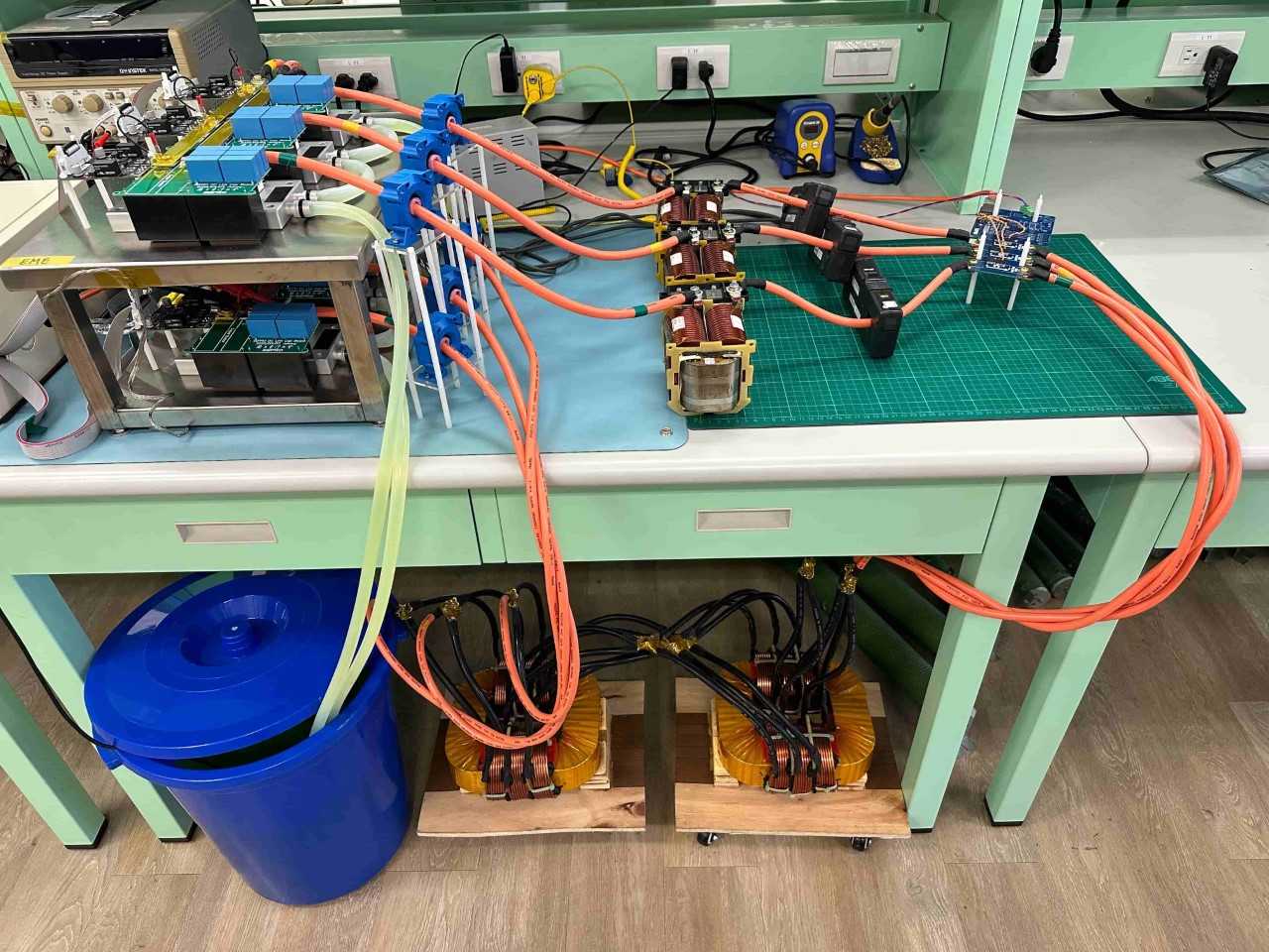 馬達驅動器測試使用EME取代真實馬達,具有操作簡易,規格調整迅速、可實現馬達故障情境、沒有轉動元件、縮短研發時程、電能回收等諸多優點。EME技術重點包含:馬達模型、數值運算、延遲補償、電流控制、諧波消除、轉速訊號回饋等等。本作品為30 kW原型機,可實際與馬達驅動器對接,完成不同轉矩與轉速情境測試。