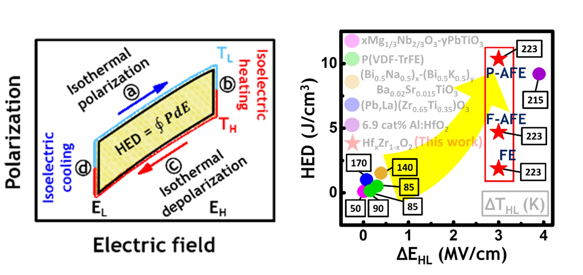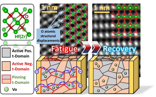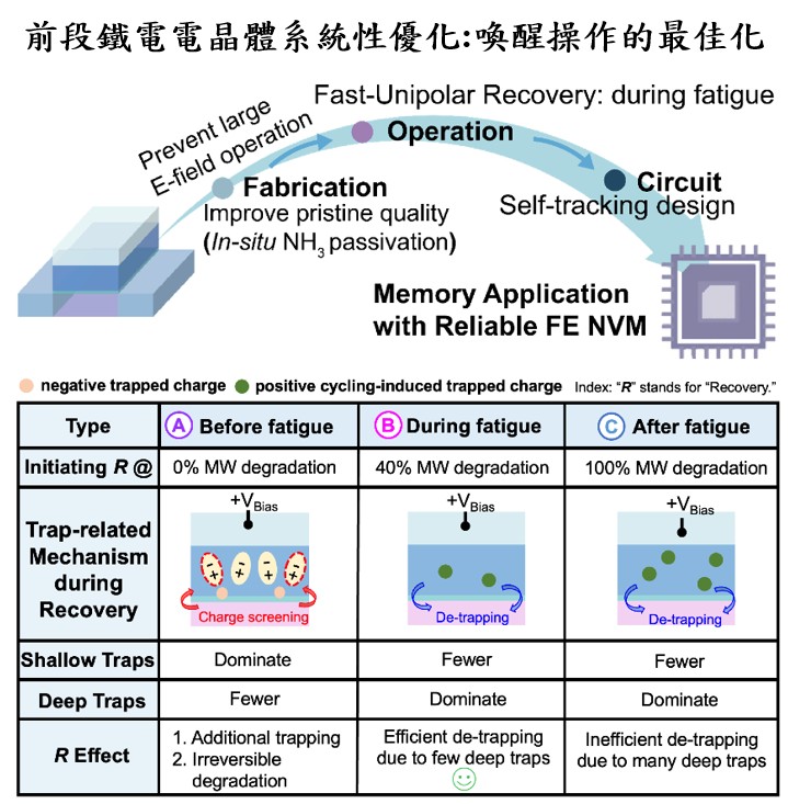 本技術以螢石結構氧化鉿鋯材料為核心,應用於熱電獵能。在具有溫差環境下透過熵值轉換達成高效能量回收。以正鐵電及反鐵電材料開發,並具有壓電及熱電效應。相反極性電場循環達成完全恢復疲勞,大幅延長使用次數。目標為開發於3D封裝、立體堆疊、背面供電技術等應用中的潛力。