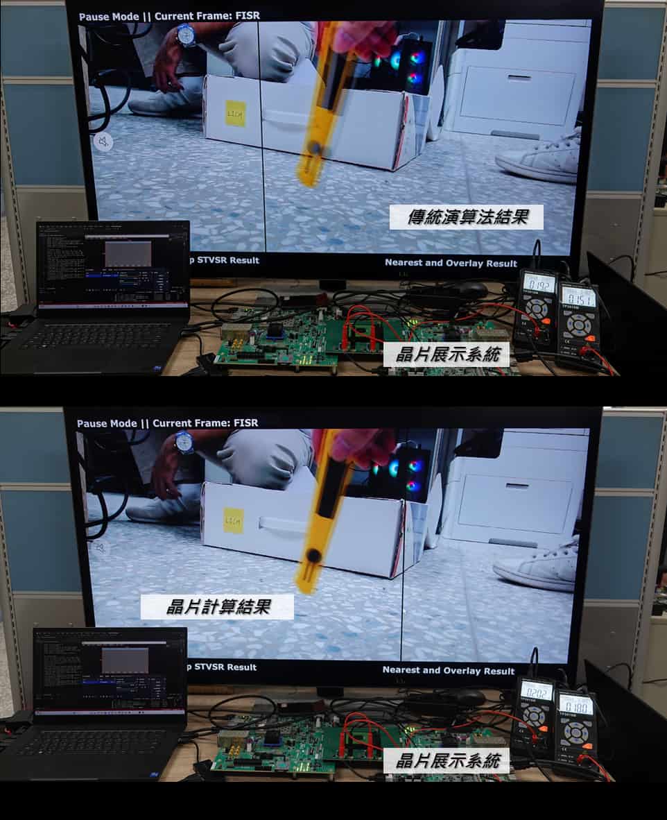 本作品所設計的時空解析度強化系統,可整合進市售高規格的顯示器中,展現出此應用在下世代顯示技術上的潛力。為展現出其潛力,我們透過自製的PCB板與FPGA板,建構完整的即時展示平台,可將輸入低解析度Quarter HD 30 FPS影像,即時提昇至4K-UHD 60 FPS,以達實際互動與雛型展示效果。