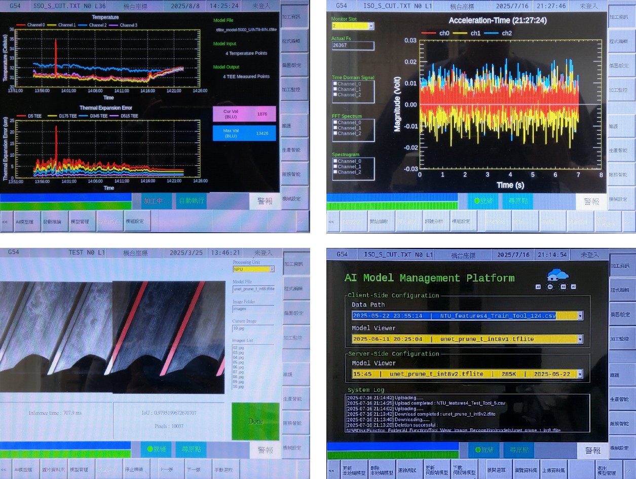 建立全世界第一套AI嵌入式CNC控制器,使控制器能在CPU以及NPU進行AI模型推論,在佈署AI模型上導入模型剪枝(壓縮)技術,並能上傳數據於雲端平台進行修模。AI技術方面包含了軸向熱變形預測技術、刀具磨耗影像檢測技術、插補與伺服參數最佳化技術,以期達到高速、高精、高品質以及低成本的目標。