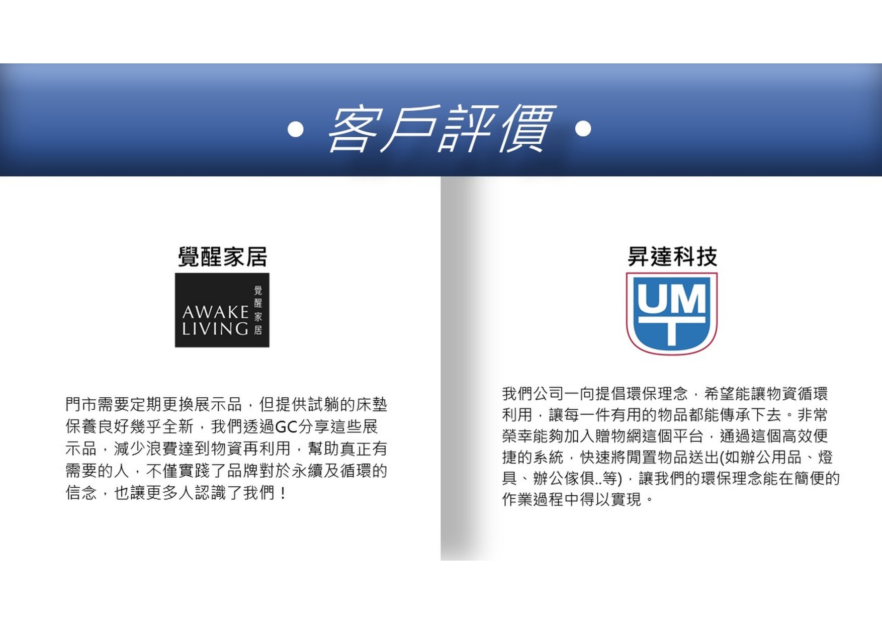 1.零廢:居家、辦公、倉庫閒置物,透過【GC贈物網】延續生命週期,展開新生命
