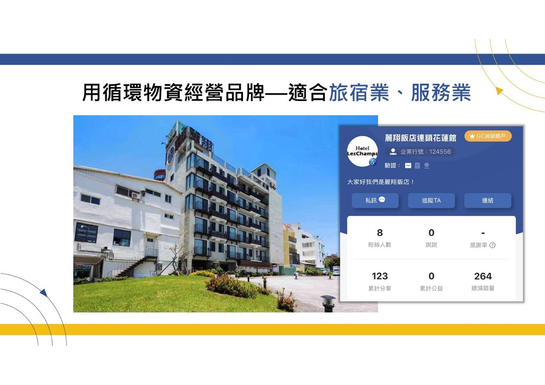 四、提供企業用戶的專業版本,企業的「循環/共享」ESG儀表板:高效率循環讓物品免於廢棄及焚化的貢獻,透過本公司軟體系統計算,可量化出「減廢減碳」、多種「社會影響力」指標效益