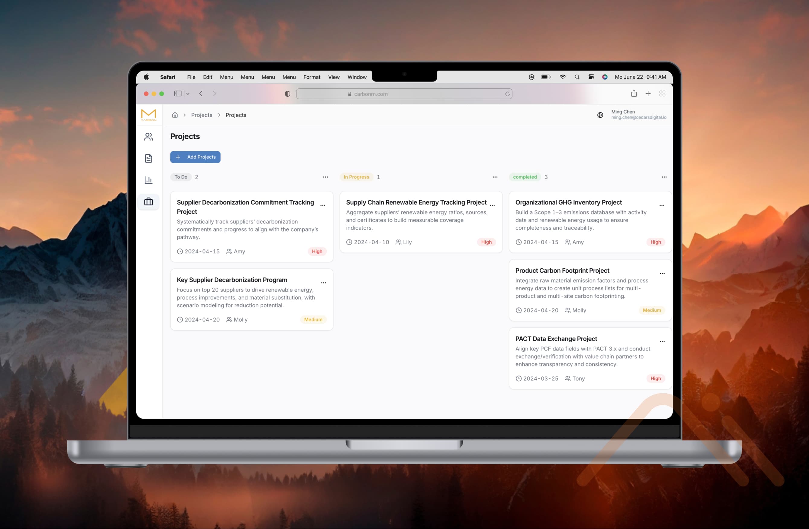 ・ AI Data Engine: Automatically cross-check and complete missing data, precisely matching the right emission factors.