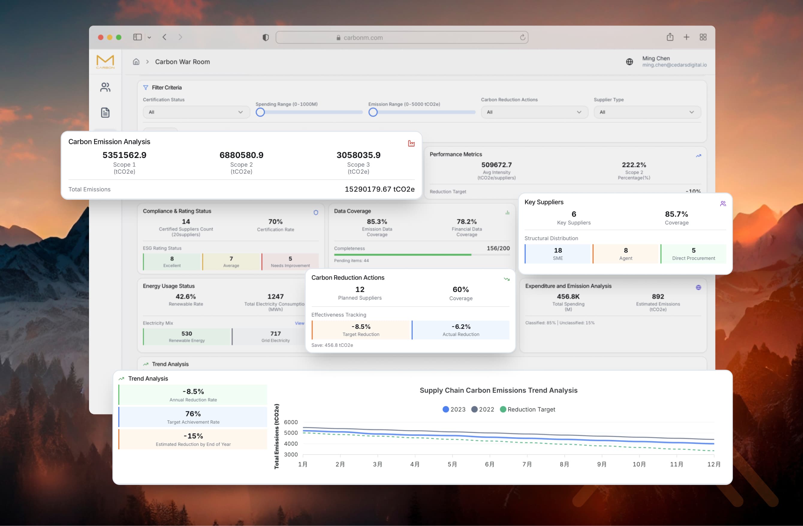 The AI-Powered Net Zero Supply Chain Module, integrating AI and automation technologies, helps enterprises overcome the bottlenecks of fragmented data, massive datasets, and complex decarbonization decisions.