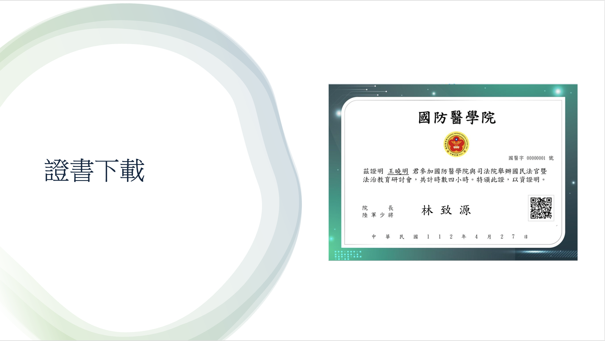模擬訓練系統是透過複合性技術整合來提升訓練的效果,如虛擬實境、大數據分析、區塊鏈、人工智慧、桌遊等,目前以建立醫療糾紛數位法庭,法官可標記證據之關鍵部份予被告、證人觀看,沉浸式體驗法官、檢察官、律師與訴訟當事人不同角色的權利與義務,透過情境案例(如醫糾)訓練學員因應社會情境處理能力,降低時間、成本。