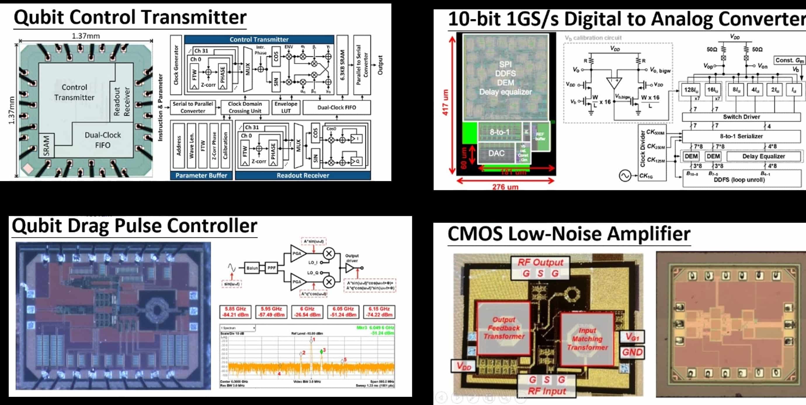 未來科技館 | 電子與光電技術簡介: 實用化量子電腦需百萬級量子位元以實現糾錯,傳統室溫電子儀器因長距離連接導致延遲、熱負載、成本與噪訊問題,難以支援大規模系統。本研究提出低溫互補金屬氧化物半導體(cryo-CMOS)系統單晶片技術,整合數位訊號產生、數位類比轉換、混頻器、本地振盪器、射頻驅動/放大器及低雜訊放大器,並針對約 4 K 環境優化設計,經晶圓代工製作,以驗證其在低溫下直接控制與讀取量子位元訊號之可行性。 產業應用性: 臺灣具備強大的積體電路製造與設計社群,但在量子位元及其周邊電路製造上經驗不足。本計畫旨在建立低溫 CMOS(cryo-CMOS)技術知識,這對大規模量子電腦至關重要。同時,cryo-CMOS 亦具備太空電子應用潛力,因外太空溫度可低至約 4 K。我們開發的電路模組可整合為通訊收發器,為低軌衛星關鍵元件。產業界缺乏先進 CMOS 技術的應用經驗,而我們的研究將為量子計算與全球通訊兩大領域鋪路。