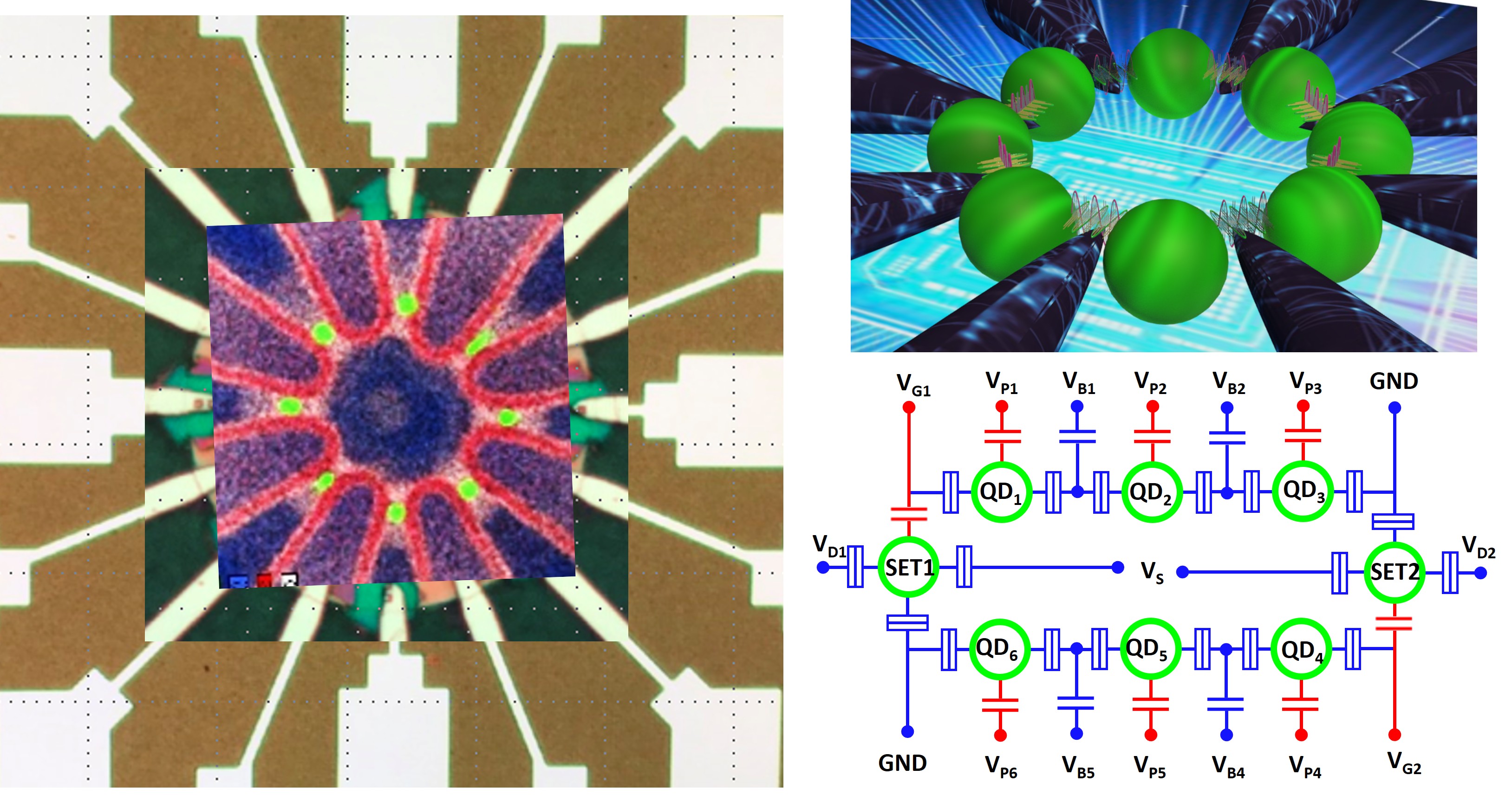 未來科技館 | 電子與光電技術簡介: RGIQC以CMOS製程,可成長一體成型、緊密耦合鍺量子點陣列。具有定位與調控量子點直徑與顆數等工程優勢。量子點之間,備有自我組裝矽基耦合位障與自我對準電極,提供多種量子位元與單電荷偵測器組態,具有重構性與擴充性。已展示在高溫(>10K)運作的功能性與可行性,如:閘極操控蜂窩電荷態與庫倫阻斷穩定態。 產業應用性: 人工智慧、大數據應用皆迫切需要高效能運算器處理巨量數據資料。發展可擴充、容錯、高溫運作又具量產可能性的半導體量子電腦,不僅可以鞏固我國在先進積體電路製造的領先地位,更可以為人工智慧、數據中心、高速運算、通訊、醫藥、加密等產業開拓更大的市場價值。