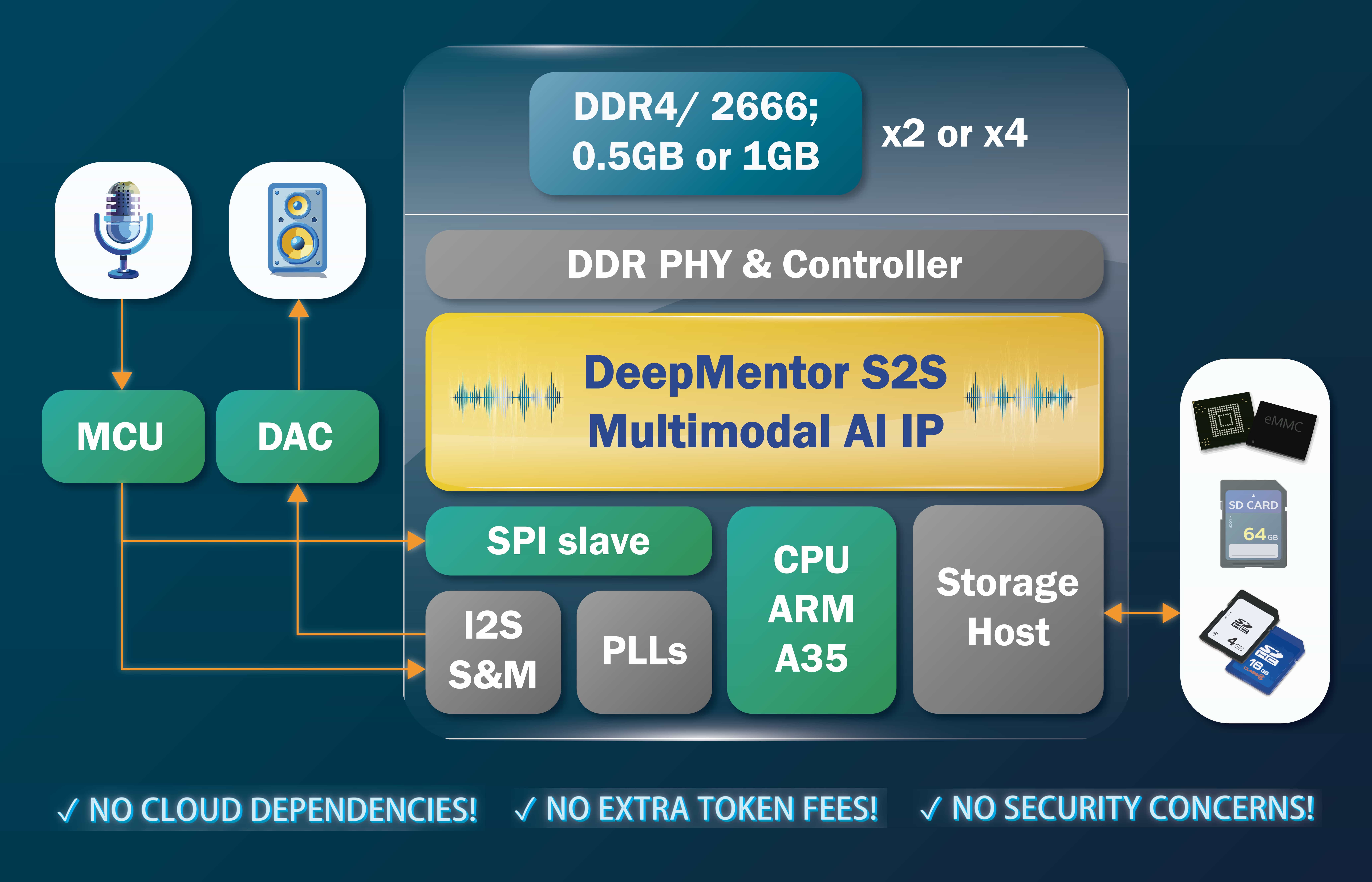 未來科技館 | 資訊與通訊技術簡介: - <0.5s Instant Response — Ultra-low latency interaction '- On-Premise AI — Works without internet connection, ensuring data privacy '- Multimodal Interaction — Speech-to-Speech and Vision integration '- Complete Edge AI Toolchain — Developers can easily create tailored experiences by our labeling and finetuning tools to train and build domain-specific knowledge '- Built-in Echo and Noise Reduction IP 產業應用性: DeepMentor's latest innovations are transforming human-machine interactions by moving away from button-based interfaces to seamless, natural conversations. This voice-first approach provides a hands-free, intuitive, and accessible UI/UX for people of all ages and abilities. It is expected to be integrated into applications such as smart cockpits, smart home appliances, companion robots, and interactive kiosks.