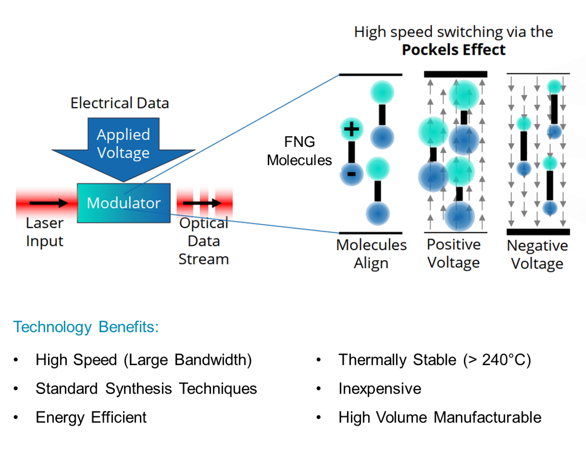 未來科技館 | 資訊與通訊Technology Introduction: Polaris Electro-Optics is pioneering high-speed silicon-organic modulators to overcome data rate bottlenecks in conventional silicon photonics. Our proprietary Ferroelectric Nematic Glass (FNG) material exploits the Pockels effect and unique silicon photonic modulator design to enable fast, energy-efficient optical modulation. Industry Applicability: Our technology is developed to address the surging demand for high-speed data transfer across data centers, telecommunications, AI infrastructure, and optical computing. FNG is integrated onto silicon photonic ICs post-foundry, without modifying standard fabrication processes, delivering superior performance, manufacturability, and scalability.
