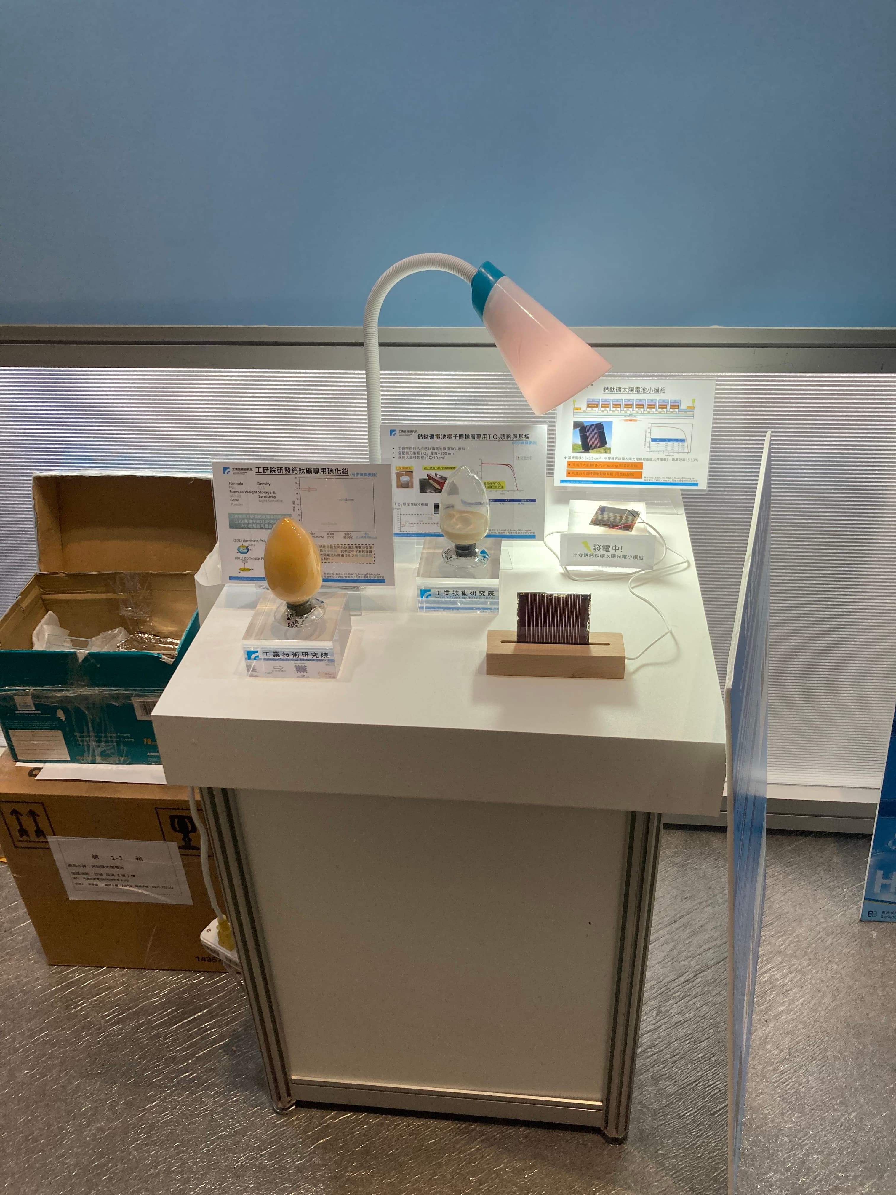創新經濟館 | 綠能與環境技術簡介: 本計畫以「循環再生設計」為核心,賦予退役電力設備全新生命。退役木橫擔化身床頭閱讀燈,變電箱門板轉化為具地方特色的隔熱墊與置物盤,日月潭淤泥燒製成人孔蓋杯墊,封水銅條再鍛為水力筆與陀螺。透過物理加工與文創設計結合,打造無法被仿製的獨特作品,展現台電以循環經濟追求環境永續的具體實踐。 產業應用性: "本計畫重新思考退役電力設備的再生可能,從材料特性與技術應用切入,展現其在設計、建築、文創與工藝領域的廣泛潛力。 風化木橫擔具天然肌理與結構穩定性,適用於家具與空間設計;變電箱彩繪鋼板兼具工業強度與視覺記憶,轉化為文創商品與裝飾材料;日月潭水庫底泥經處理後可燒製陶藝,延伸至陶瓷產業應用;封水銅條則熔鑄再製為具歷史感的筆與藝術品,拓展高質感金屬工藝市場。 透過循環設計導入綠色材料再利用,本計畫串聯產業、文化與永續價值,推動綠色供應鏈與地方創生新契機。"