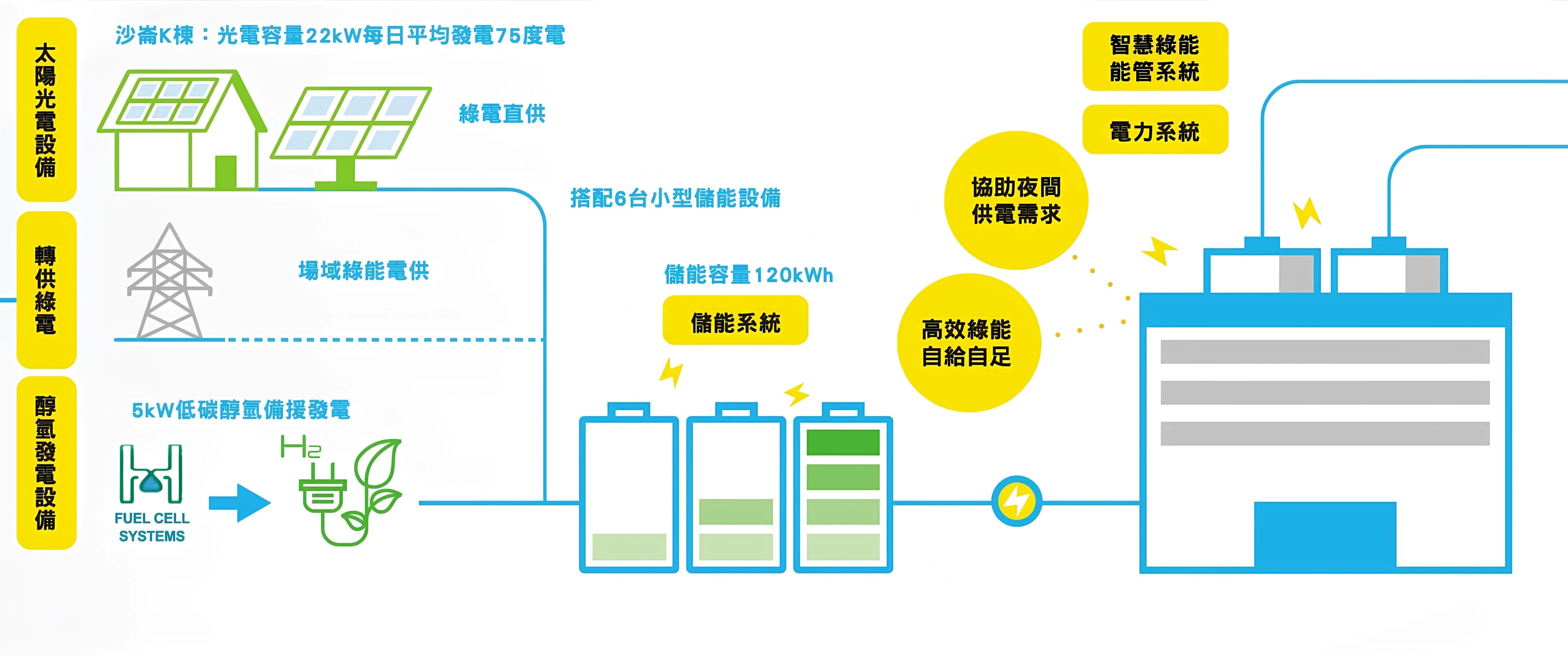 創新經濟館 | 綠能與環境技術簡介: 展示技術為一種小型微電網的電力供電架構,是實現快速部署淨零低碳電力的創新方案,符合10kW~200 kWh/天之電力需求,此系統具模組化、可擴充之特性,亦能支持離網、快速部署綠電能源供應方案,加速實現淨零碳排目標。 產業應用性: 分散式能源供應架構結合太陽光電、儲能系統與低/零碳備援電源,具模組化與可擴展特性,能快速部署綠能供應方案。特別適用於城市微電網、智慧建築、臨時設施與偏遠地區供電等場域。其靈活性與淨零排放潛力,使其成為邁向低碳轉型與淨零碳排的重要技術解決方案。