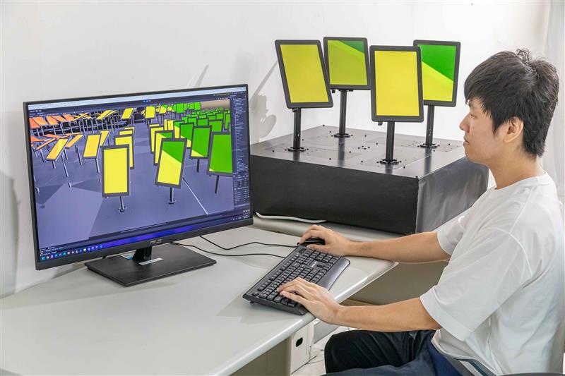 創新經濟館 | 資訊與通訊數位雙生巨量裝置展演平台是為文化科技展演所打造的技術方案,是第一套多裝置同步展演系統,透過虛擬模擬進行實體展演控制來設計節目內容。 為解決展演內容無法在設計階段,藉由可視化的方法進行創作的痛點,本技術採用高擬真數位雙生技術,建立虛擬巨量裝置,並開發虛擬控制實體裝置演算法,進行巨量裝置同步控制,並將誤差時間控制在20ms以內,以如實呈現在虛擬系統中所設計創作的展演內容。同時,藉由AI的方法將大圖以最佳視角分解拼接技術進行畫面分配,及旋轉和角度設定,控制多顯示和多轉軸的展演系統,在三度空間中呈現最佳拼接效果,建構整合展示系統,展現多裝置互動技術特色,讓世界驚豔臺灣創新實力。 本技術亦提出專利申請建構技術門檻,讓臺灣產業站上2025 大阪世界博覽會的國際舞台,未來也可拓展至更多應用。