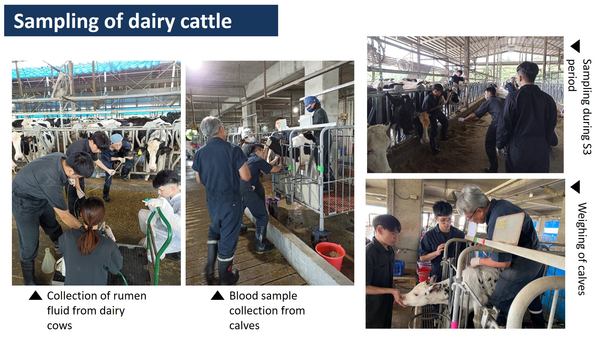 智慧永續館 | 材料化工與奈米技術簡介: 本技術結合多質體分析與動物模型,自乳牛瘤胃篩選具健康潛力之益生菌,以提升乳牛健康與乳品質。比較健康與乳房炎乳牛之菌相與代謝體,鎖定 Ruminococcus flavefaciens 與 Bifidobacterium longum subsp. longum,並經體外發酵及鼠糞菌移植驗證機能性。再整合 Lactobacillus salivarius 與 Saccharomyces cerevisiae,開發複合益生菌。牧場試驗證實,可顯著降低乳房炎發生率,並提升泌乳量與酪蛋白含量,具商品化條件。相較市售多為非牛源菌株,本技術源自乳牛,具更佳定殖性與功能性,並契合低碳減抗與永續趨勢。全球市場年增7%,潛在應用逾40萬頭牛,估年產值20億元,展現應用潛力與競爭力。 產業應用性: 本產品鎖定乳品產業與反芻飼料添加劑市場,優先拓展美、歐與亞太(中國、印度)等高成長區。以提升牛群健康、乳量與減抗為核心價值,結合台灣製造與科學驗證切入高端客群。獲利採專利授權與技術合作,並以教育行銷、產官學協作與補助計畫加速導入;同步申請美歐在地認證、建立代理/經銷體系與品牌在地化。風險以持續創新、法規合規與供應鏈多元化分散。未來聚焦與具量產能力之生技公司、飼料廠結盟,快速規模化與跨國布局。