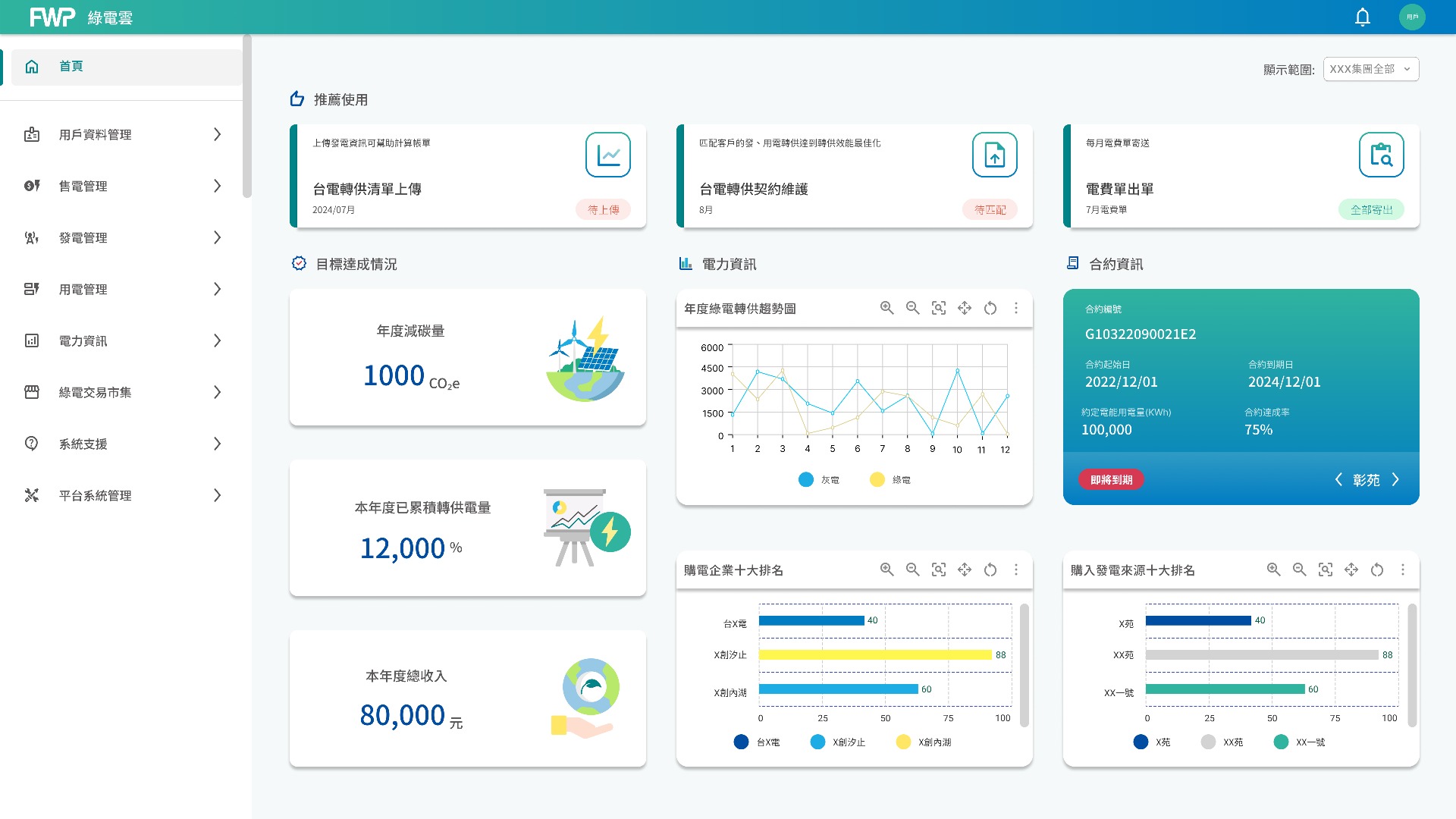 智慧永續館 | 資訊與通訊技術簡介: 數位化綠電管理平台,以台灣電力市場為主軸整合用電即時監控、綠電憑證追蹤以及財務預估,提供企業一站式能源管理服務。透過IoT與AI技術,實現即時能源追蹤管理與提供碳盤查電力範疇資料串接,減少人力成本、提升數據準確性。 產業應用性: 本平台協助企業追蹤產品上游供應鏈的綠電使用狀況,強化綠電管理透明度與符合永續報告需求。對於集團企業,平台可用於統整各公司年度綠電使用進度(RE達成率),並提供未來用電趨勢與財務成本預測,作為能源採購依據。同時也支援售電業者進行綠電轉供配對,提升轉供效率與準確度,減少人工操作錯誤,強化交易靈活性。透過這些功能,平台有效提升能源決策效率,實現數位化與智慧化能源管理。