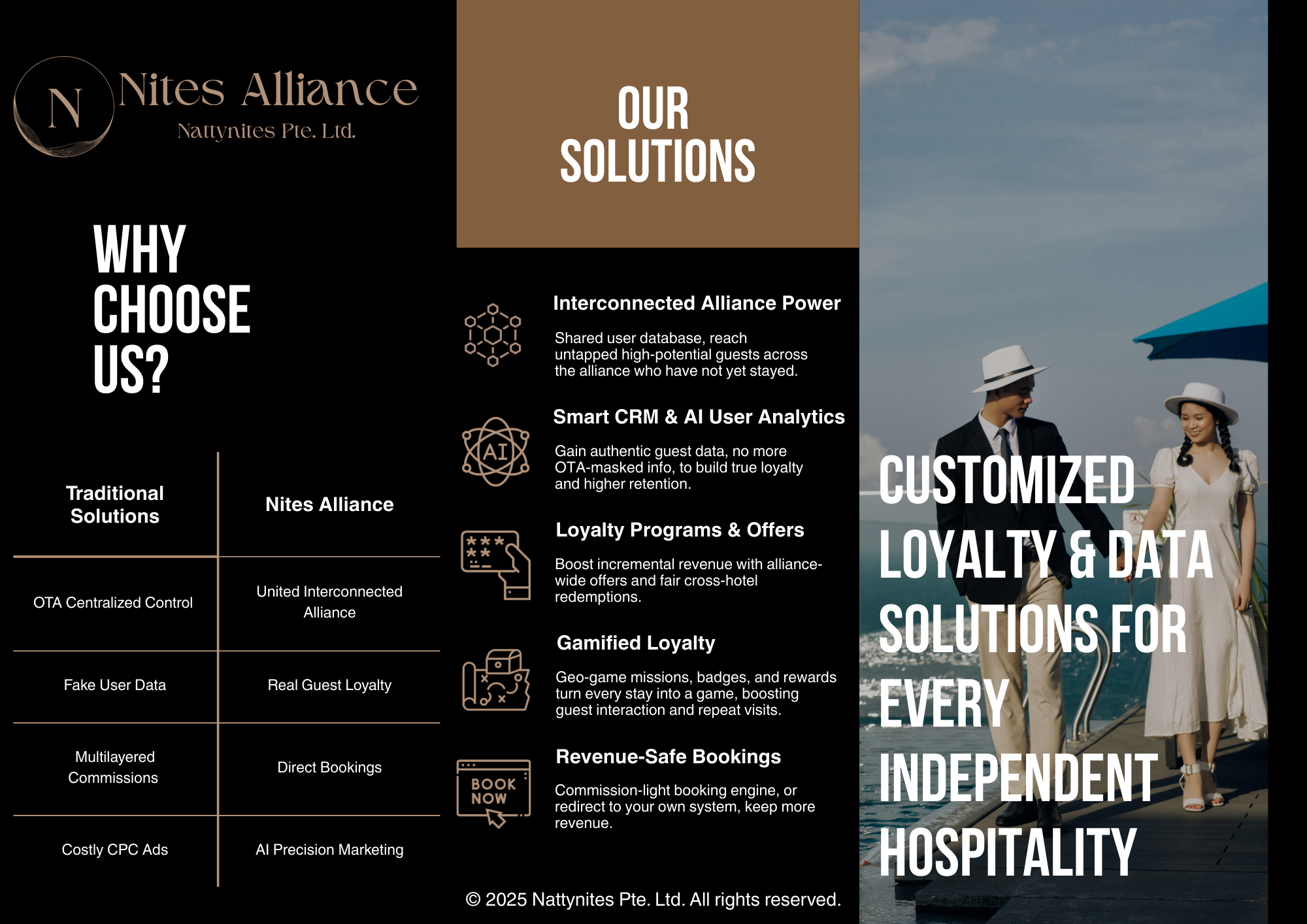 智慧永續館 | 生活應用Technology Introduction: An AI-powered loyalty alliance for Asia’s independent boutique hotels, B&Bs, and villas. With a shared AI database, smart CRM, gamified missions, and an interconnected hotel network, we help hotels cut OTA commissions and marketing costs while solving masked guest data issues. The platform drives direct bookings, builds true loyalty, and empowers hotels to regain control of data and marketing. Industry Applicability: Hospitality, Travel & Tourism, Boutique Hotels, B&Bs, Villas & Independent Stays, Marketing & Customer Loyalty Technology