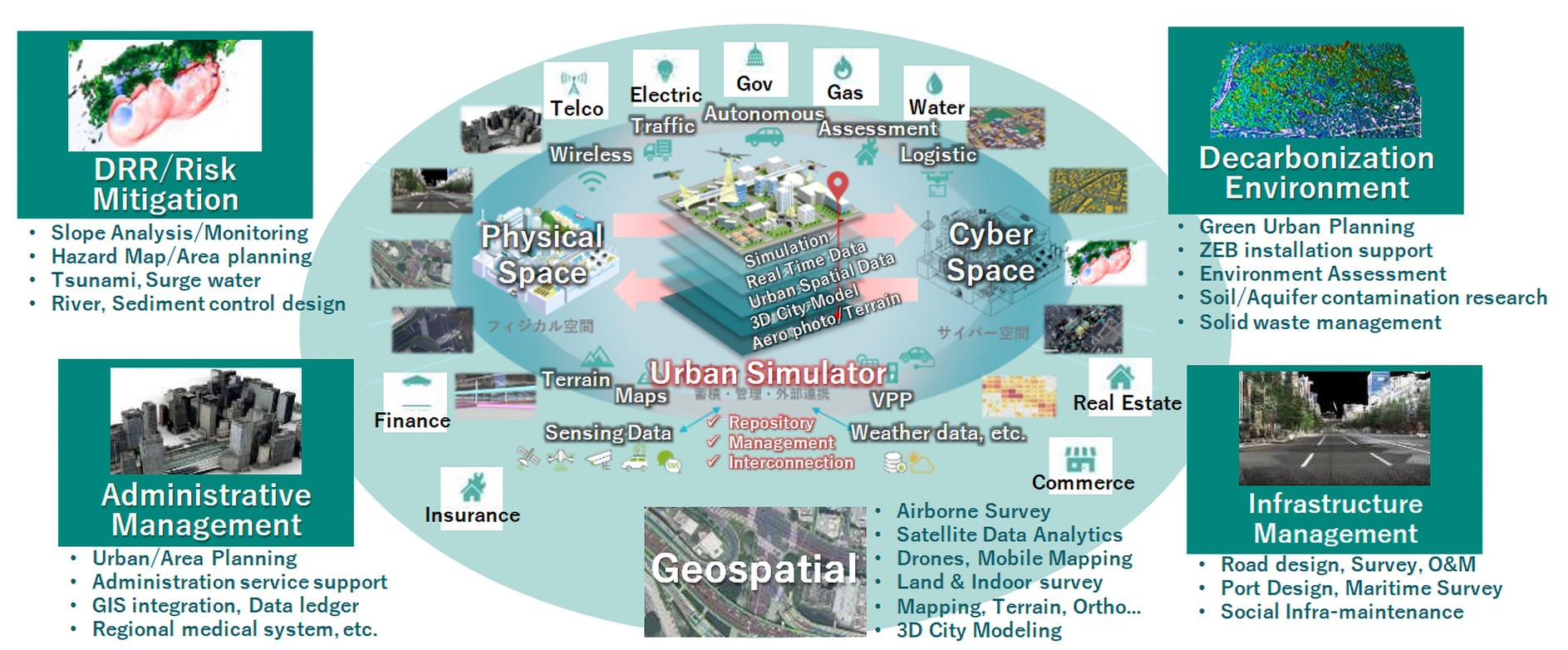 智慧永續館 | 生活應用國際航業運用地理空間資訊,提供高度專業化的技術與服務,涵蓋廣泛領域並涉及日常生活的眾多面向。我們執行從太空、地表到水下及地下的地理空間資料獲取技術,並提供以地理空間為核心的解決方案與顧問服務。我們深切致力於解決全球社會所面臨的各項問題,並將可持續的社會傳承給未來世代。 Kokusai Kogyo utilizes geospatial information to provide highly specialized technologies and services across a broad range of fields touching on many aspects of daily life. We execute Geospatial data acquisition technologies covering from space, to the earth’s surface, to underwater and underground; and provide Geospatial centric solution and consulting services. We are deeply committed to solving the issues facing global society and passing on a sustainable society to future generations.