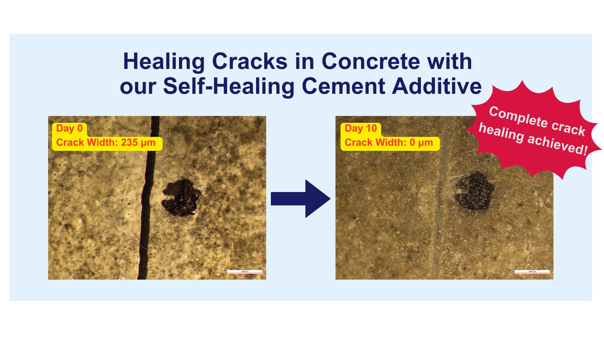 新加坡南洋理工大學所研發成功的新型細菌封裝技術,為水泥基建築材料提供自修復功能。功能梯度膠囊具有致密的表面和多孔的核心結構以保護細菌孢子。這些膠囊可以直接添加到水泥基體中,不會影響混凝土的流動性、凝結時間、水化或抗壓強度。實驗結果表明,細菌在混凝土裡可以保持其活性,在5次乾溼水循環後能夠修復寬度為0.2-0.3毫米的混凝土裂縫。